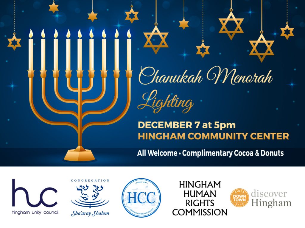 This evening, the heart of Hingham will be illuminated with the warm glow of tradition as the Hingham Human Rights Commission, in collaboration with the Hingham Unity Council, Congregation Sha’aray Shalom, the Hingham Community Center, and the Hingham Downtown Association, hosts a second annual downtown Hingham Chanukah Menorah Lighting outside the Hingham Community Center, 70 South Street at 5pm.