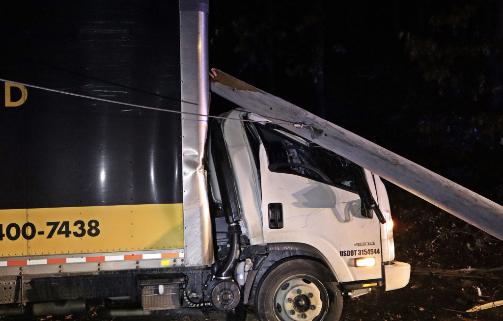 The crash happened on February 10, 2024 at 3:31am near 75 Whiting St. (Route 53). The truck had been driving eastbound. The driver, who did not attempt to slow, may have fallen asleep while driving. After impact, the pole broke in half and landed on the truck. Whiting St. was closed for until 4:45am. The 48 year old driver was cited for Negligent Operation and Failing to Stay Within Marked Lanes.