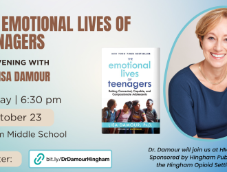 Hingham Public Schools Building Projects Accepted for Grant Funding by MSBA Read More → Open House Invitation: Hingham Preschool & Pre-K Read More → Helping Hingham Teens Thrive: Dr. Lisa Damour on the Power of a Steady Presence Read More → MCAS results: significant strengths and areas for improvement highlighted Read More → Improving Both Mind and Heart at Derby Read More → Search process for new Foster School principal and permanent HHS principal in the works Read More → Foster School principal retiring at end of school year Read More → Reminder: Author Talk with Dr. Lisa Damour — Thursday, October 23 Read More → New Student Services executive director outlines entry plan Read More → Recent Posts Thank you from the Hingham Food Pantry Featured Listing: 38 Smith Road, Hingham MA Hingham High dancer playing role of Sugar Plum Fairy in South Shore Ballet Theatre’s ‘The Nutcracker’ Way Back Wednesday: Charles Hawkes Marble $100 million Hingham substation would ensure electrical supply reliability and support town’s climate goals Single tax rate continues for residential, commercial properties; property tax relief available for qualifying seniors Support Local Community News this #GivingTuesday! Obituary: Freda W. Hall Recreational shellfish harvesting could become a reality along part of harbor shoreline next year Hingham Civic Music Theatre Presents Shrek Jr. This Week!