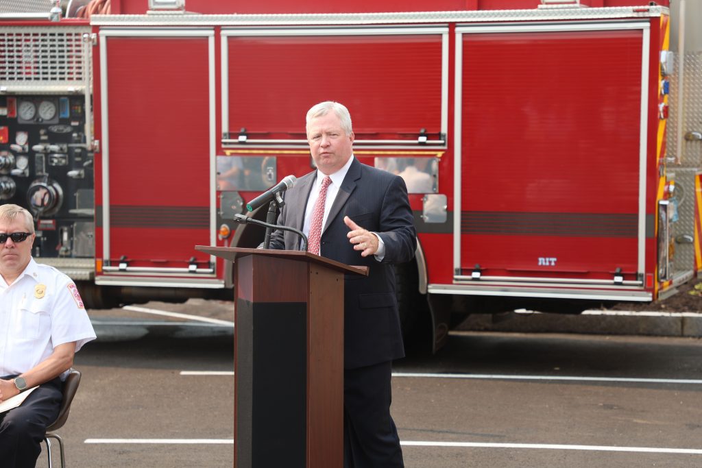 Congressman Lynch reminded the crowd of ~75 in attendance that the North Fire Station (that will be incorporated into the new facility) opened in 1942, in the midst of the Second World War. Even then, the townspeople prioritized public safety and the well- being of those that would become known as first responders. Both State Legislators echoed the Congressman’s praise of the Town’s leaders in their responsible use of public funding. Representative Meschino touted the project as a “wonderful example of good government.”