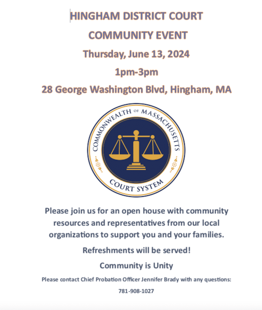 Location: Hingham District Court – 28 George Washington Blvd, Hingham MA