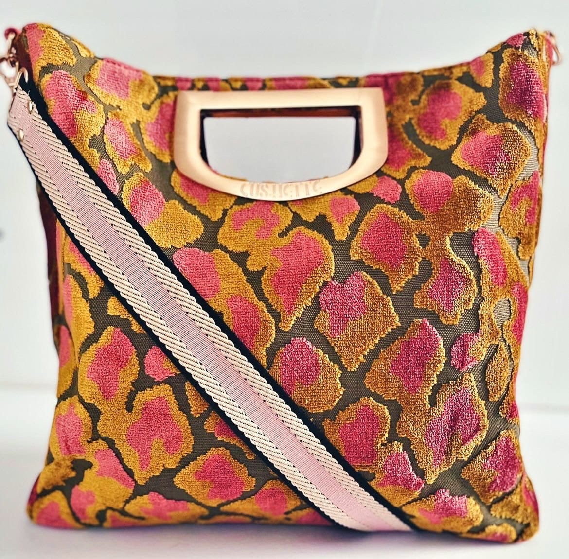 McCavanagh also wanted her bag to feel luxurious; for this reason, she selected a dusty pink color of faux suede “which feels like heaven when you reach in.”