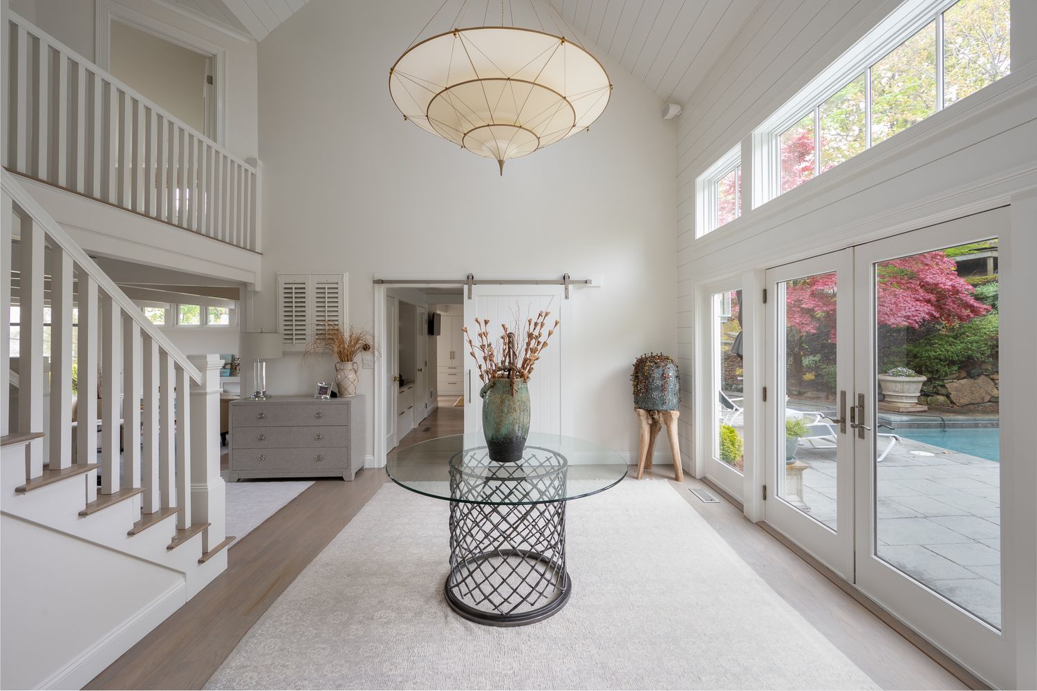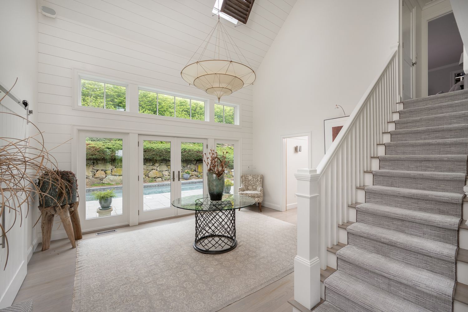 Upon entering you are greeted with soaring ceilings and a wall of glass overlooking the saltwater lap pool and yard.