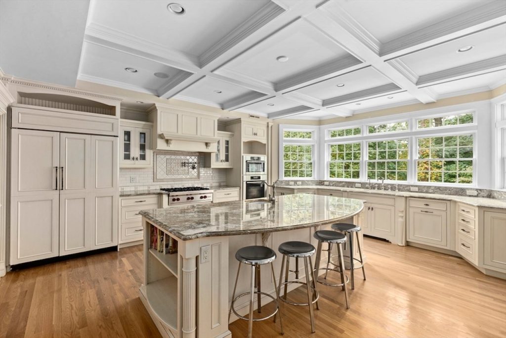 This meticulously designed home boasts a gourmet chef’s kitchen equipped with a 10-foot center island and state-of-the-art appliances, seamlessly opening into a sun-drenched breakfast room complete with a cozy gas fireplace.