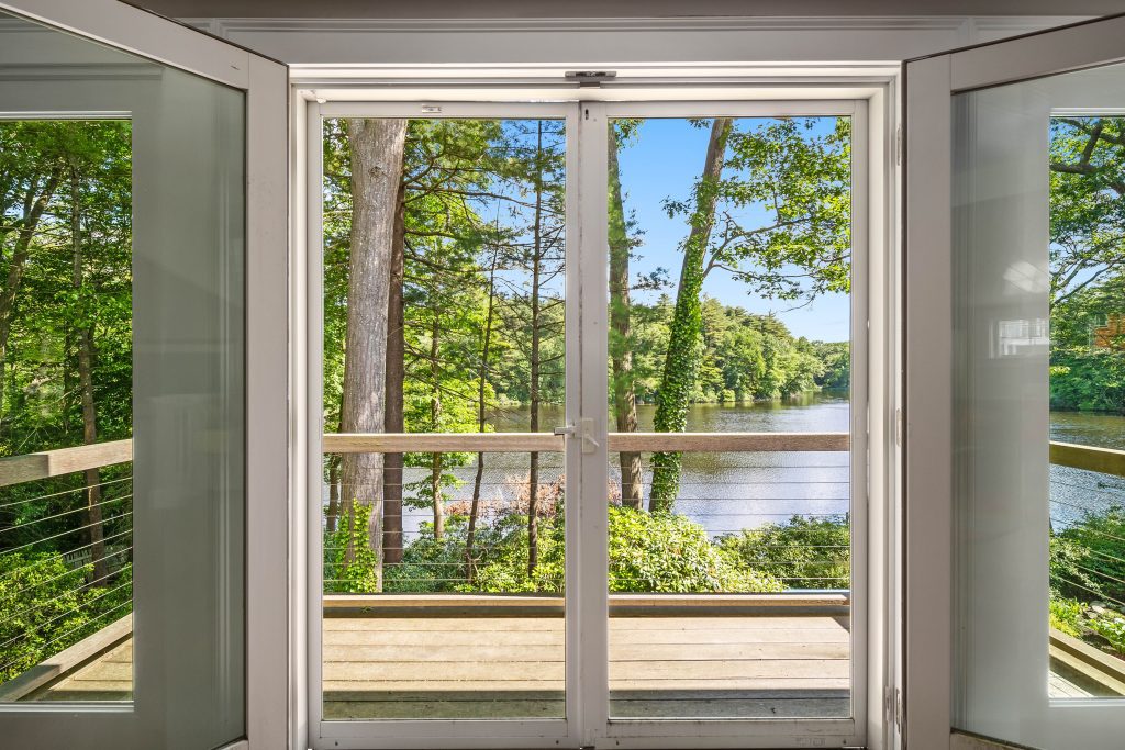 Experience serene waterfront living on Cushing Pond with this beautifully remodeled ranch-style home, complete with a private dock. The main level boasts two spacious bedrooms, including a primary suite, while a newer addition offers a third bedroom en suite with a balcony overlooking the tranquil pond.