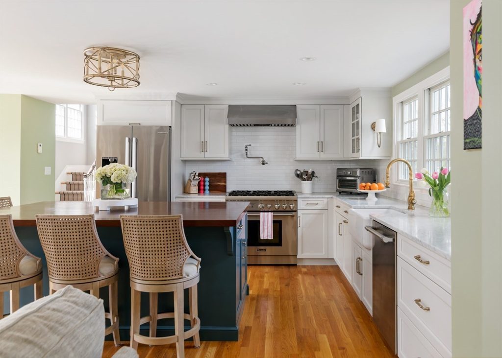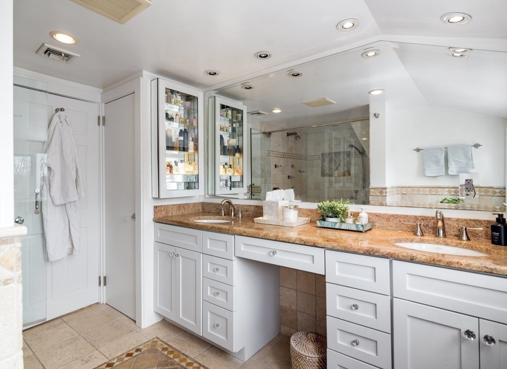 The recently renovated kitchen/sitting room is highlighted by a gorgeous kitchen with marble counters, large mahogany island and pantry with 2nd laundry. The Butler’s pantry is an entertainer’s dream and the dining room with vaulted ceiling easily seats a crowd.