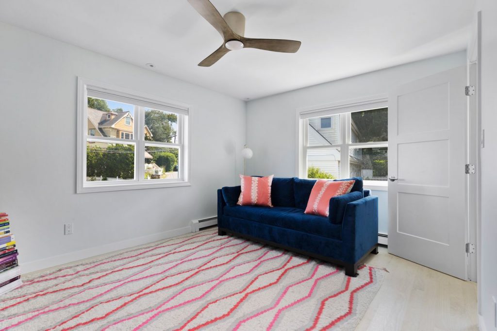 The third floor has an additional bedroom which could be used as a guest suite/home office w/ a full bath and a deck w/views of Boston.