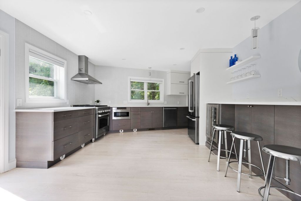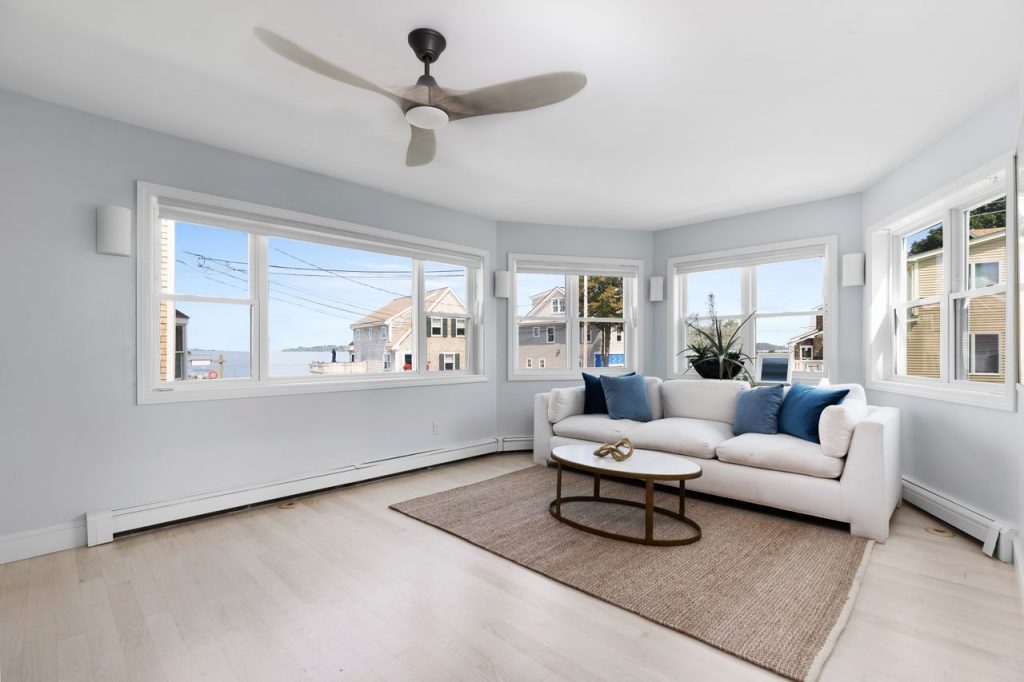 Completely Gut Renovated in 2021.The home features a Sunny and Spacious Chefs Kitchen with top of the line appliances, a dining room leading out to a porch with views of the ever changing waterscape, and a lovely living room w/ fire place and a sitting area.