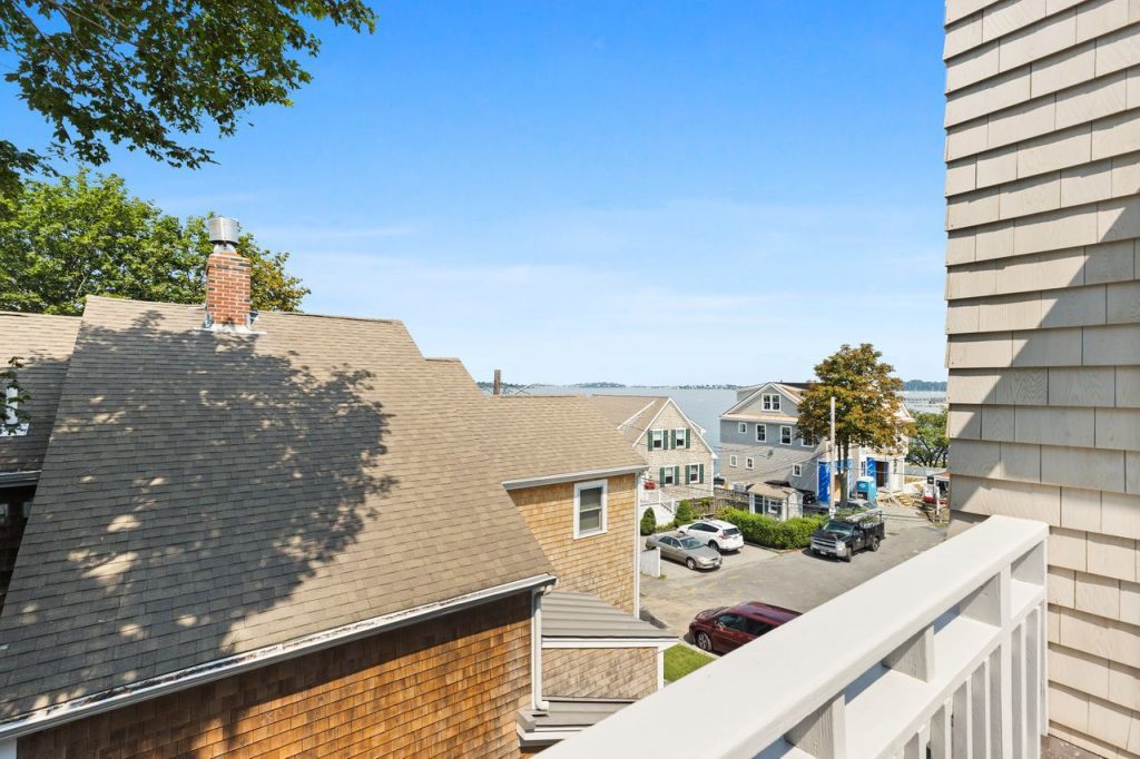 Overlooking the neighborhood dock, with a boat mooring, and a beach and within walking distance to lots of restaurants, and the commuter boat to Boston.