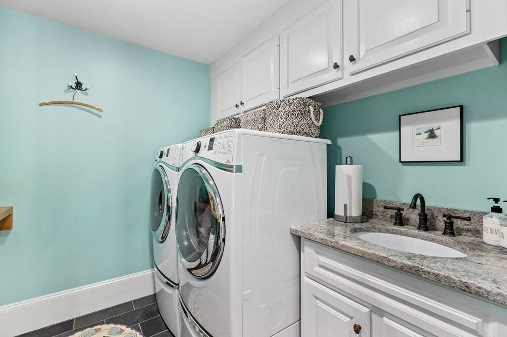 Around the corner from the mudroom is an exceptional first floor laundry room, fully equipped with a convenient counter and handy sink, offering both stye and functionality.