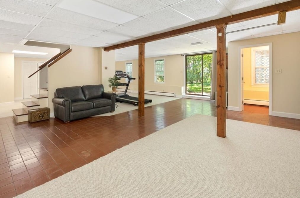 The finished lower level is a walkout with plenty of room for playroom and a gym. There is also a home office and a half bathroom.