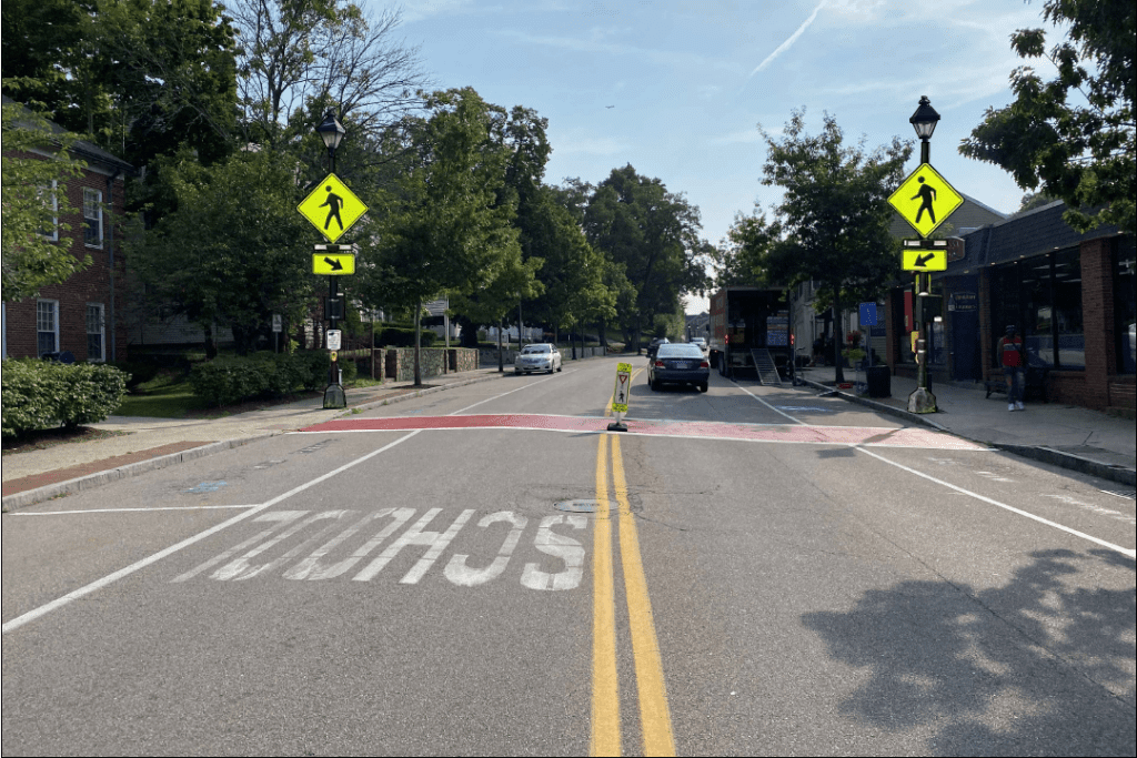 Town Engineer JR Frey explained that the RRFBs are activated by pedestrians approaching the crosswalk, causing the yellow and white warning lights to blink on both sides to alert motorists and to provide enough time for pedestrians to cross the street.