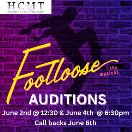 Auditions for “Footloose,” the Broadway show that is Hingham Civic Music Theatre’s next production, are scheduled for Sunday, June 2, and Tuesday, June 4, at Sanborn Auditorium of Hingham Town Hall.