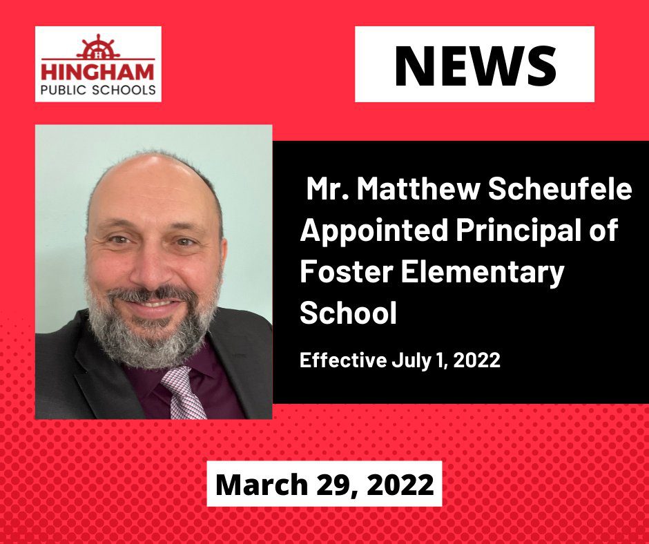 Matthew Scheufele has been appointed as the new Foster Elementary School principal, effective July 1.