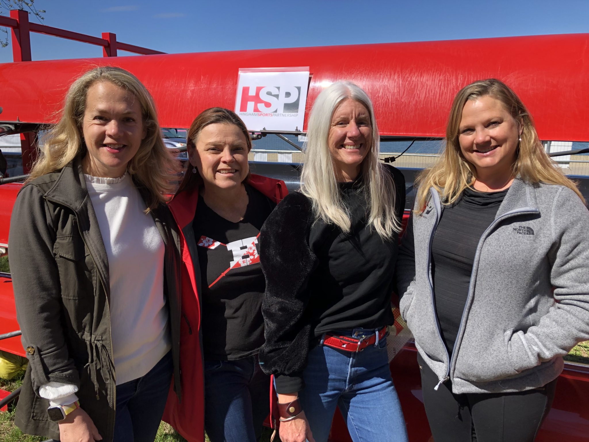 Four local women serving as presidents leading local nonprofit youth-focused organizations got together this weekend to celebrate the official launch of the three new Hingham Sports Partnership (HSP) sponsored Hingham High Crew boats.