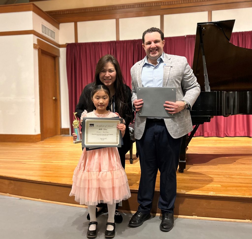 South Shore Conservatory (SSC) congratulates Hingham students Jacob Lewack, Zoe Harakeh, Millie Zhoe, and Felix Stuart for winning awards in their age divisions of the 36th annual HuiMin Wang Youth Concerto Competition. Jacob, a piano student of HuiMin Wang, placed first in the 14-18 age division and was named overall winner. He will perform with the Plymouth Philharmonic at their March 10 Hocus Pocus Magical Moments family concert. Zoe and Millie, also piano students of Wang, placed second and third respectively in the 8-10 age division; Felix Stuart, guitar student of Robert Bekkers, was awarded Honorable Mention in the 14-18 age division.