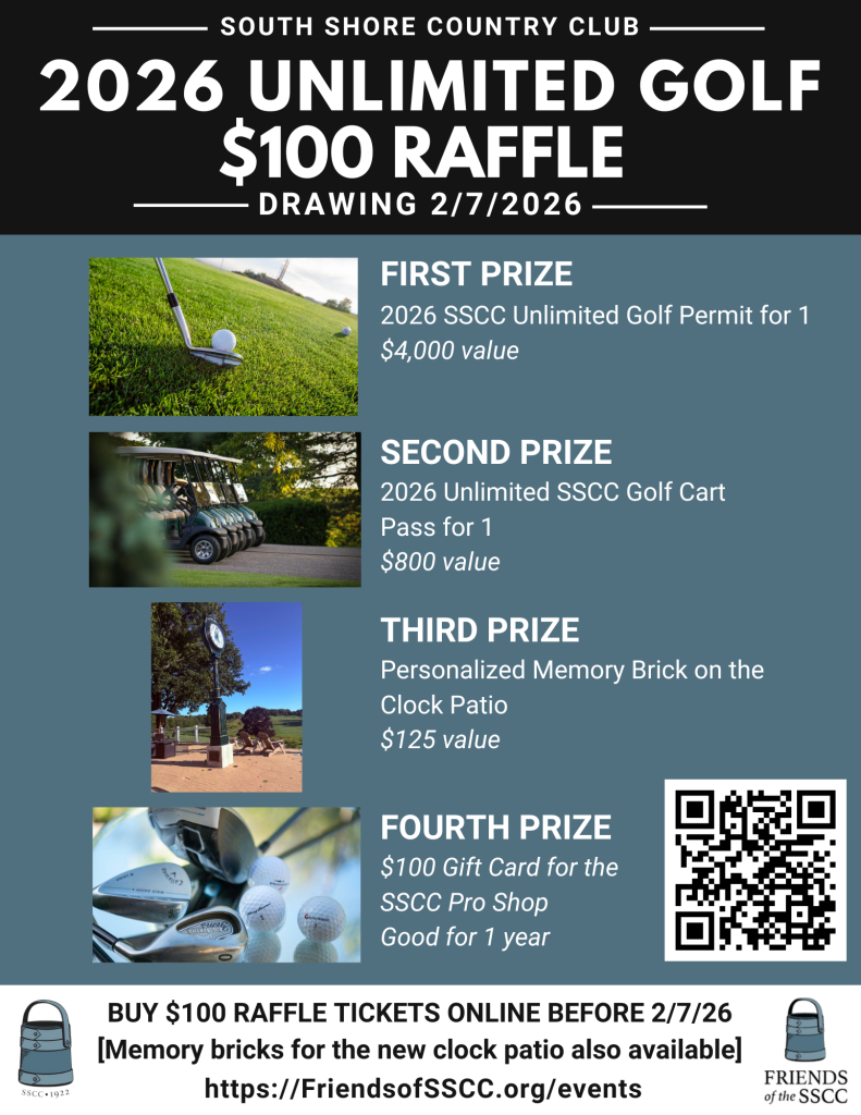 The 2026 Friends of the South Shore Country Club Unlimited Golf $100 Raffle is underway.