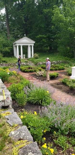 Nearly a year ago -- when the giant nearly 150-year-old Tulip Tree that provided shade for the garden was seriously damaged during a storm -- causing a large branch to come down -- the Garden Club helped clean up the area. Eventually the tree had to be taken down.