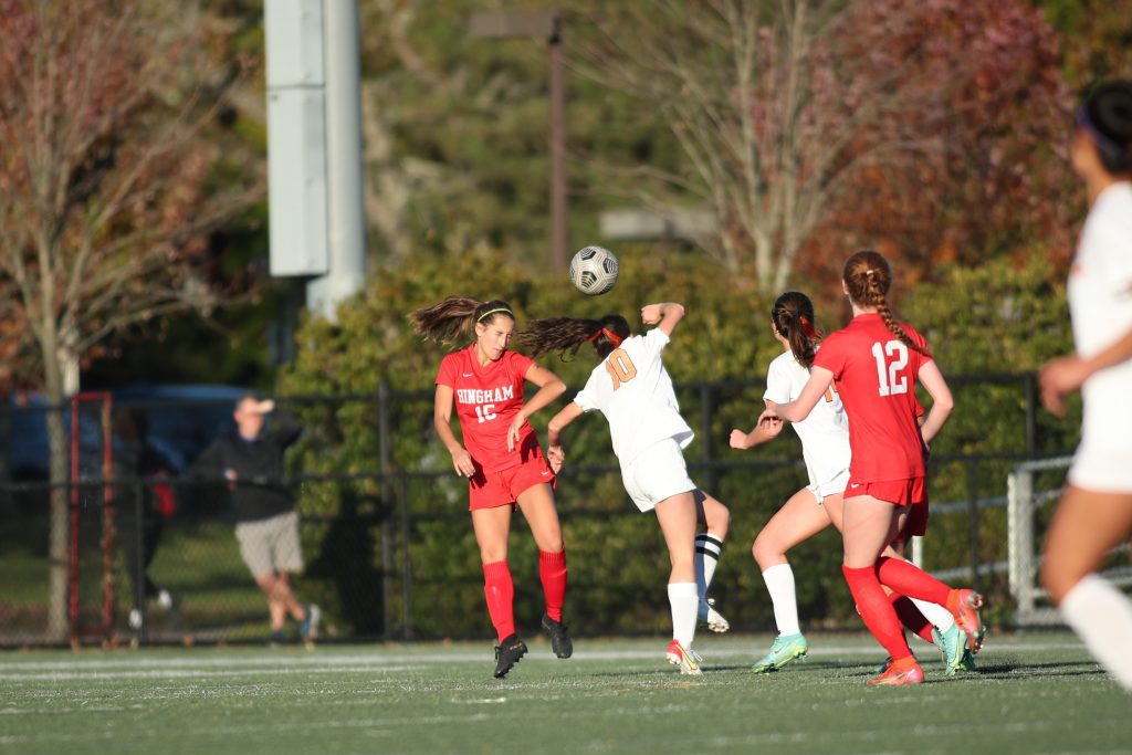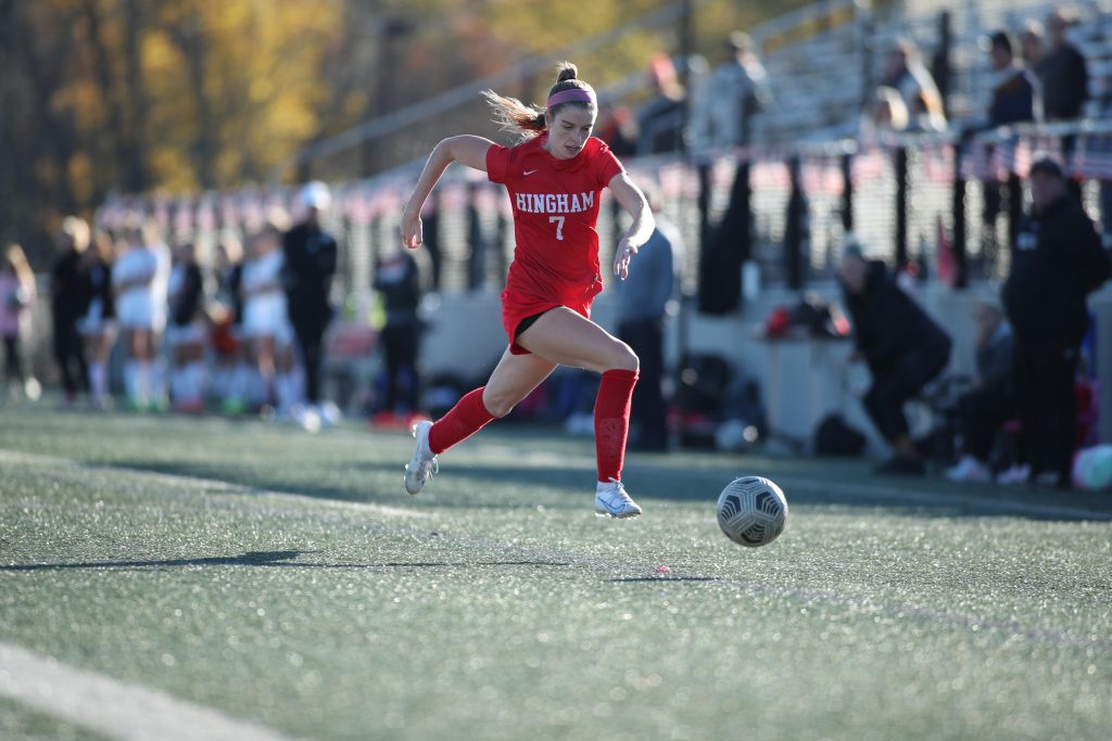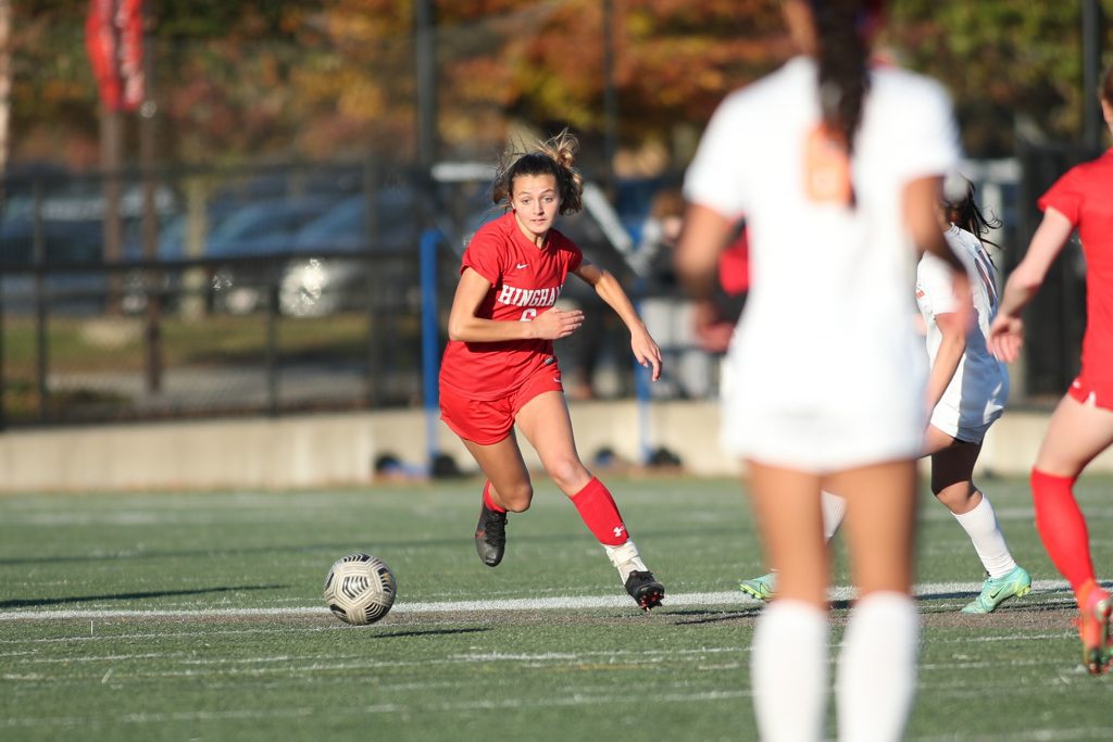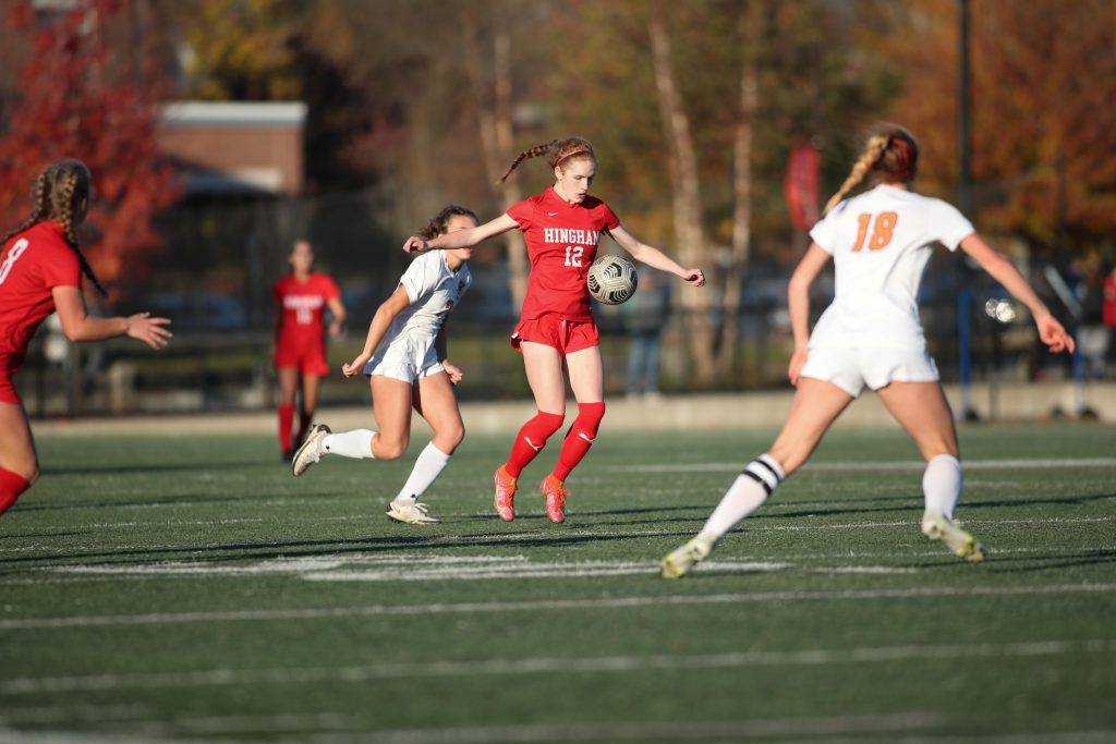 The ladies from Newton North kept it a one goal game throughout the rest of the first half and a majority of the second half. A combination of wide shots, shots directly at the goalie, or a spectacular save by a defensemen on an Olivia Sharkansky shot, Hingham couldn’t find a way to add to their lead. Then with eight minutes to go in the match, junior Kelsey Tarby gave the Harborwomen the insurance goal they needed.