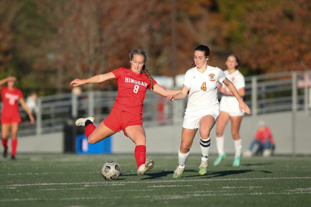 The girls were first up as they took on the 32nd seed Newton North Tigers, who were coming off their play-in game win against Chelmsford High. The Harborwomen scored first in the eighth minute when junior Sophie Reale put one past the keeper. The match had the makings of what you would expect from a 1 vs 32 match-up, but the Tigers had different plans.