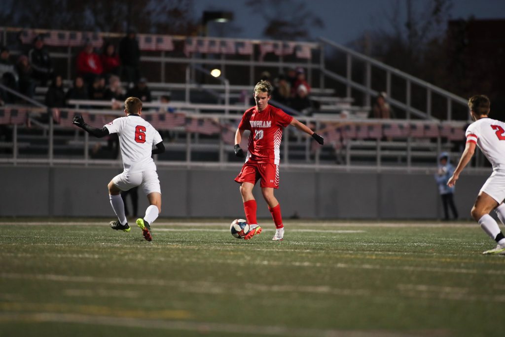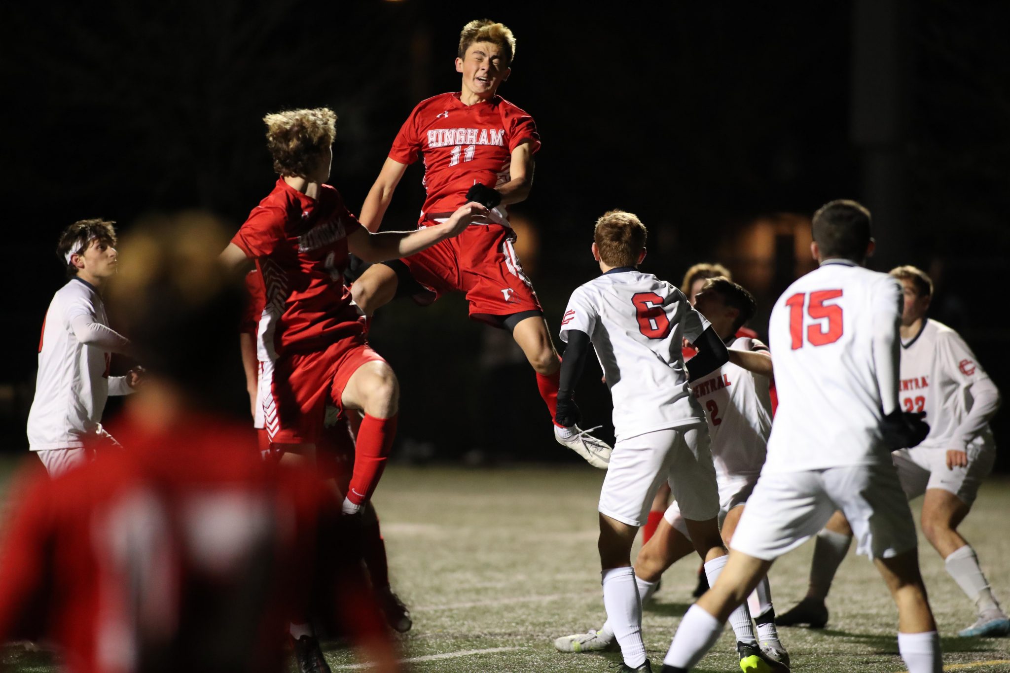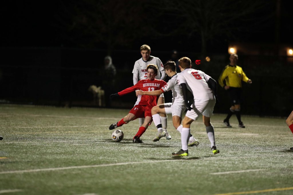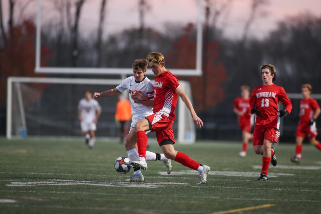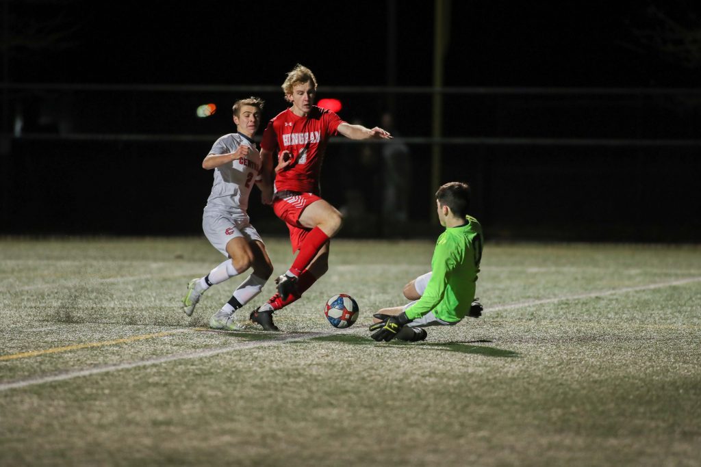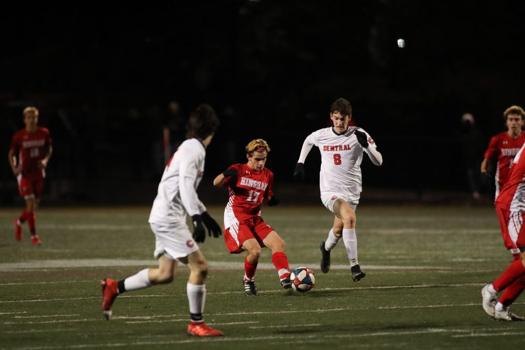 As soon as the girl’s match ended, the boys took to the pitch to face off against Central Catholic High School. The boys from Lawrence beat Revere in OT in their preliminary match. Much like the girls, the Harbormen control the play most of the game, but just couldn’t cash in on a goal. Central Catholic defense played up most of the game, causing more than a few chances from Hingham to be called off sides, including a goal.