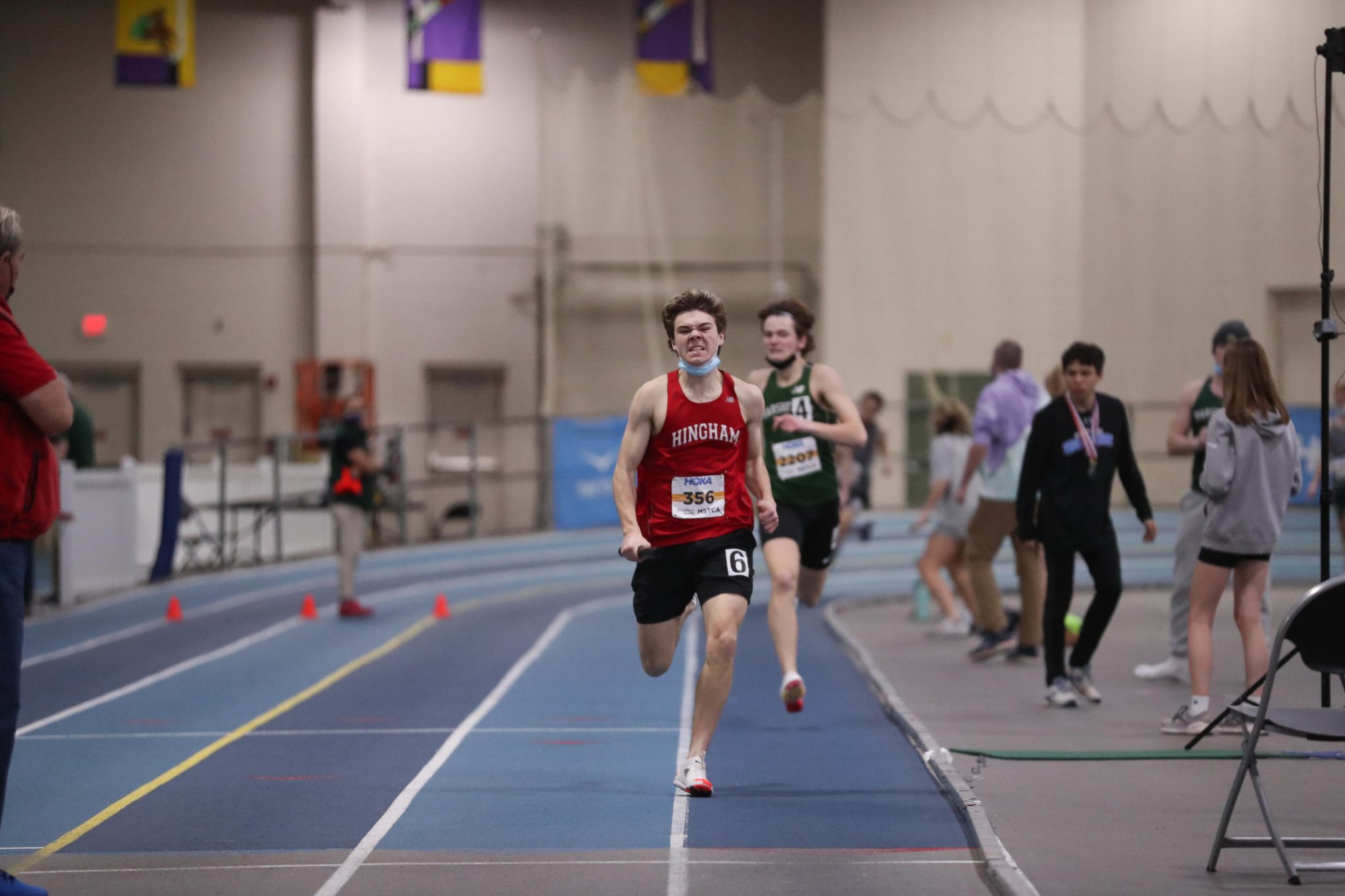 The only way to describe a meet at Reggie Lewis Center is organized chaos. There are people running, jumping, and throwing everywhere. Eleven teams with hundreds of participants on, in, and around the track, but somehow, everything goes off without a hitch.