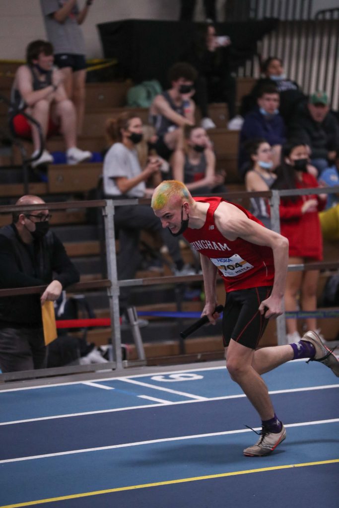The only way to describe a meet at Reggie Lewis Center is organized chaos. There are people running, jumping, and throwing everywhere. Eleven teams with hundreds of participants on, in, and around the track, but somehow, everything goes off without a hitch.