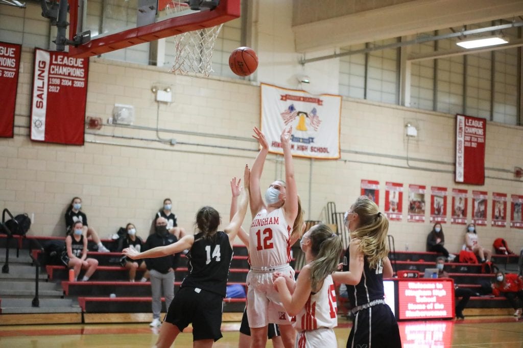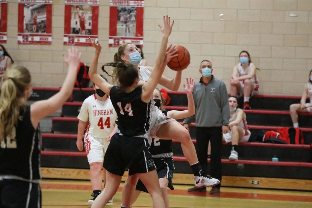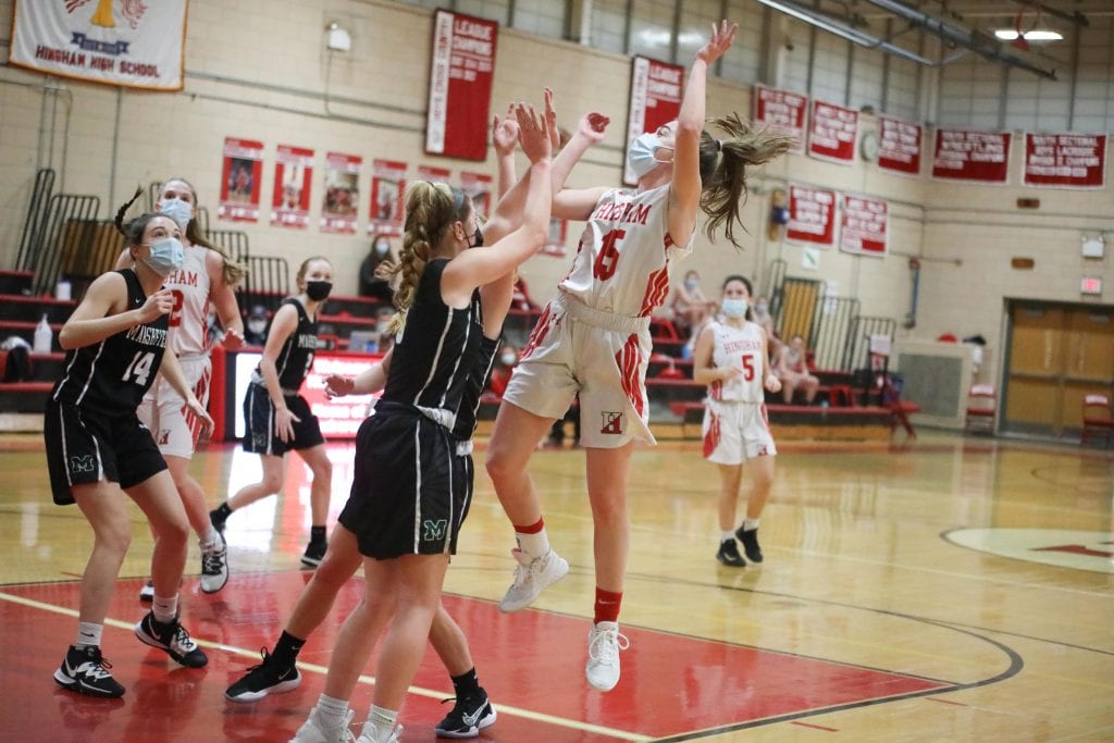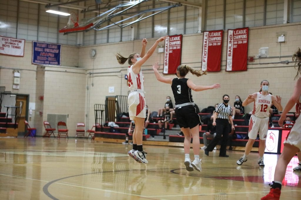 Hingham jumped out to an early first quarter lead and were dominating the boards, led by sophomore Sarah Holler, who recorded a game-high 16 rebounds in the contest. The Harborwomen have been missing their leading rebounder, junior captain Caroline Connelly, for the past 2 games, but Holler managed to fill that void last night. This was Holler’s first game back after missing a handful of games herself due to injury.