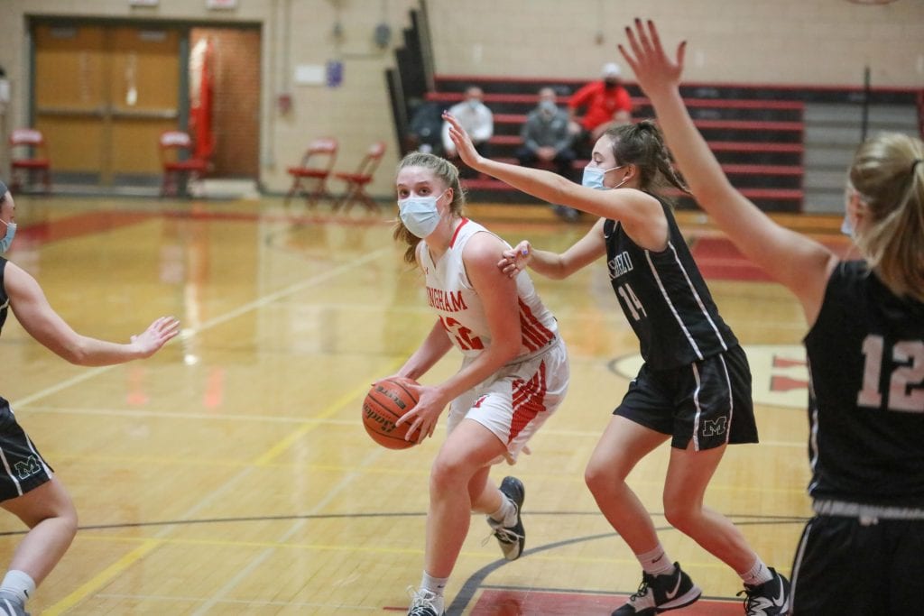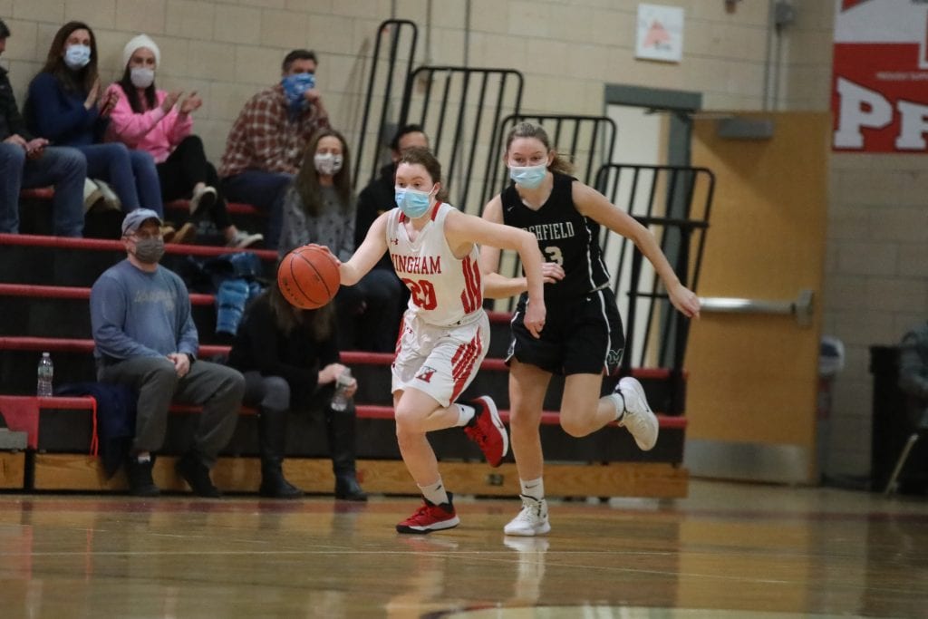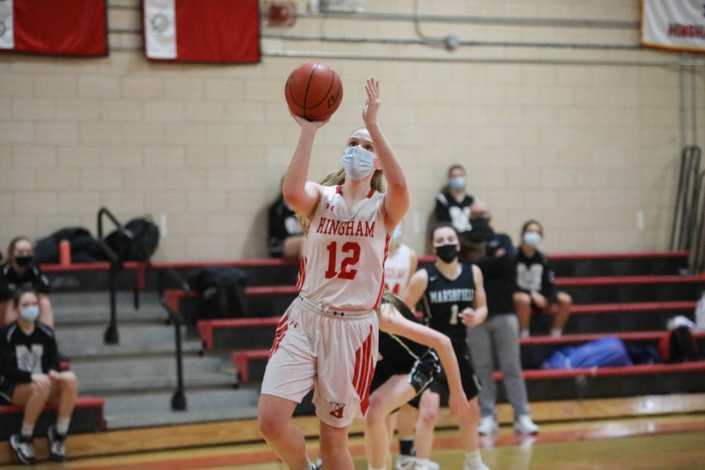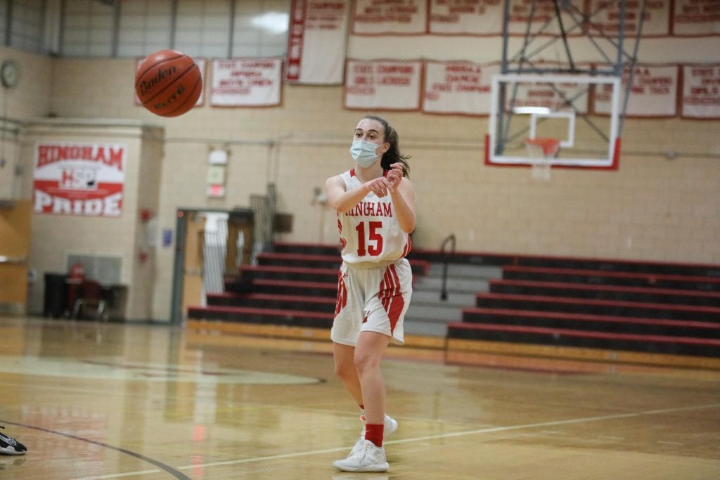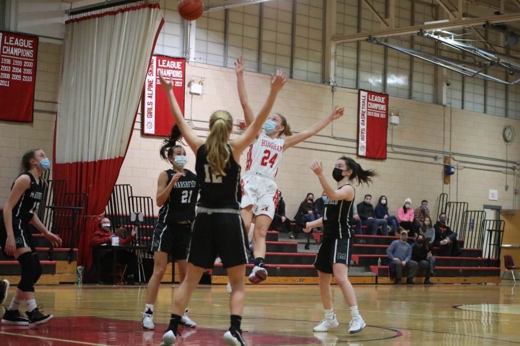Hingham jumped out to an early first quarter lead and were dominating the boards, led by sophomore Sarah Holler, who recorded a game-high 16 rebounds in the contest. The Harborwomen have been missing their leading rebounder, junior captain Caroline Connelly, for the past 2 games, but Holler managed to fill that void last night. This was Holler’s first game back after missing a handful of games herself due to injury.