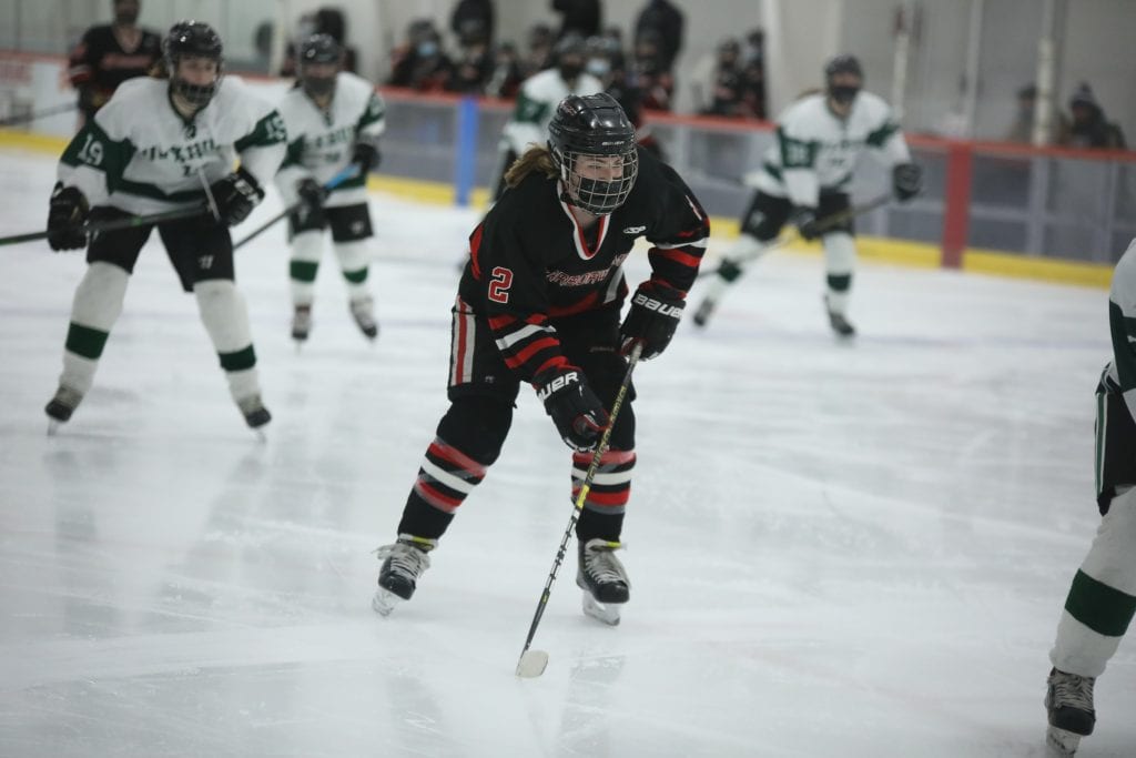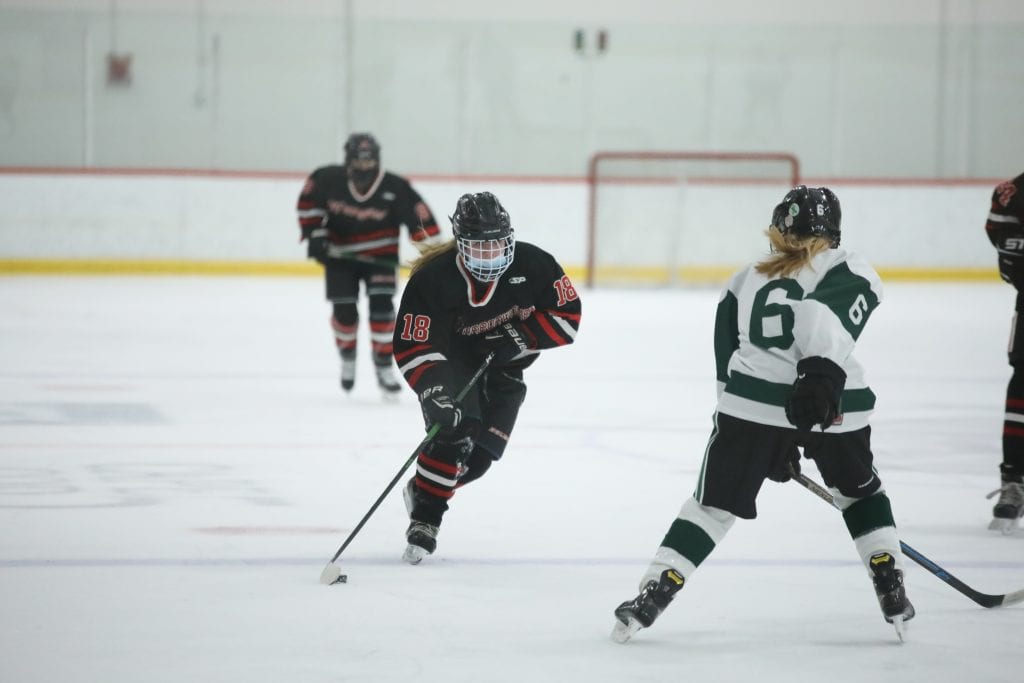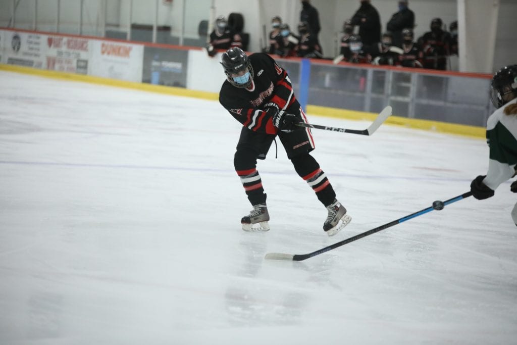 “We played good enough to win but we couldn’t score,” remarked Coach Findley, speaking of the multiple breakaway and power play opportunities Hingham could not convert on. He added that Duxbury’s defense was on point, giving credit to their freshman goalie Anna McGinty. “Their goalie played well, I give (her) a lot of credit.”