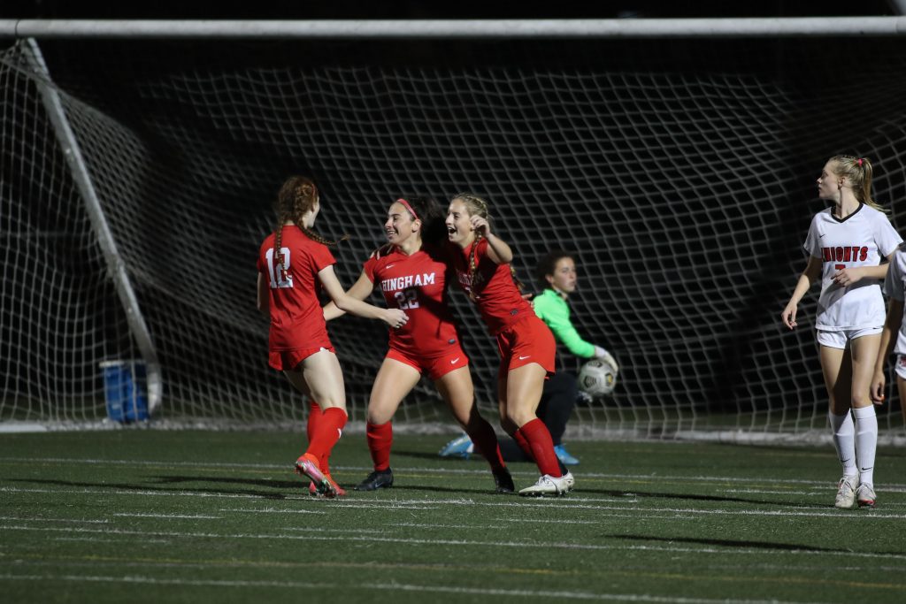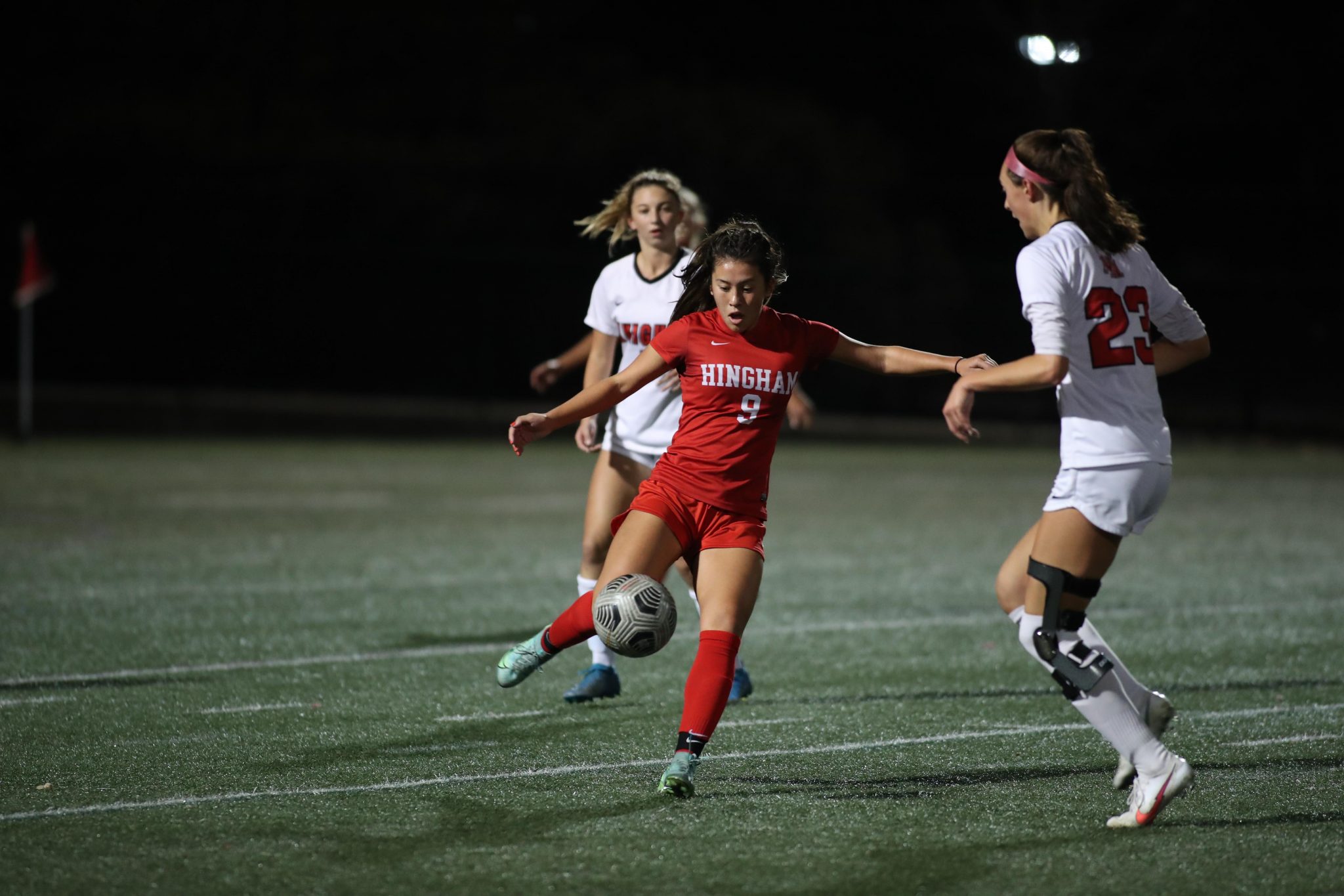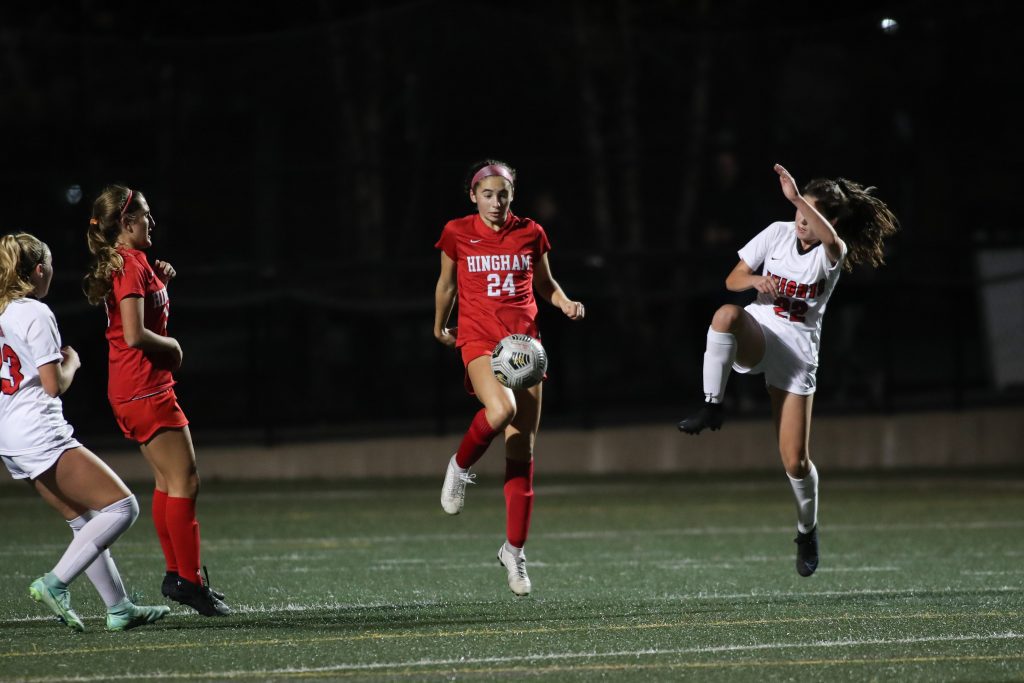 After Saturday’s close win, the girls came out against North Andover with the mindset to score, and score often. Just three minutes in, senior Olivia Sharkansky scored off an Ava Maguire pass. Eight minutes later Maguire scored of a Sofie Reale pass and to come full circle, Reale buried one from a Sharkansky pass giving the Harborwomen a 3-0 just 20 minutes into the game. The three goals were all Hingham needed on the night as they move past the Knights to the quarterfinals.