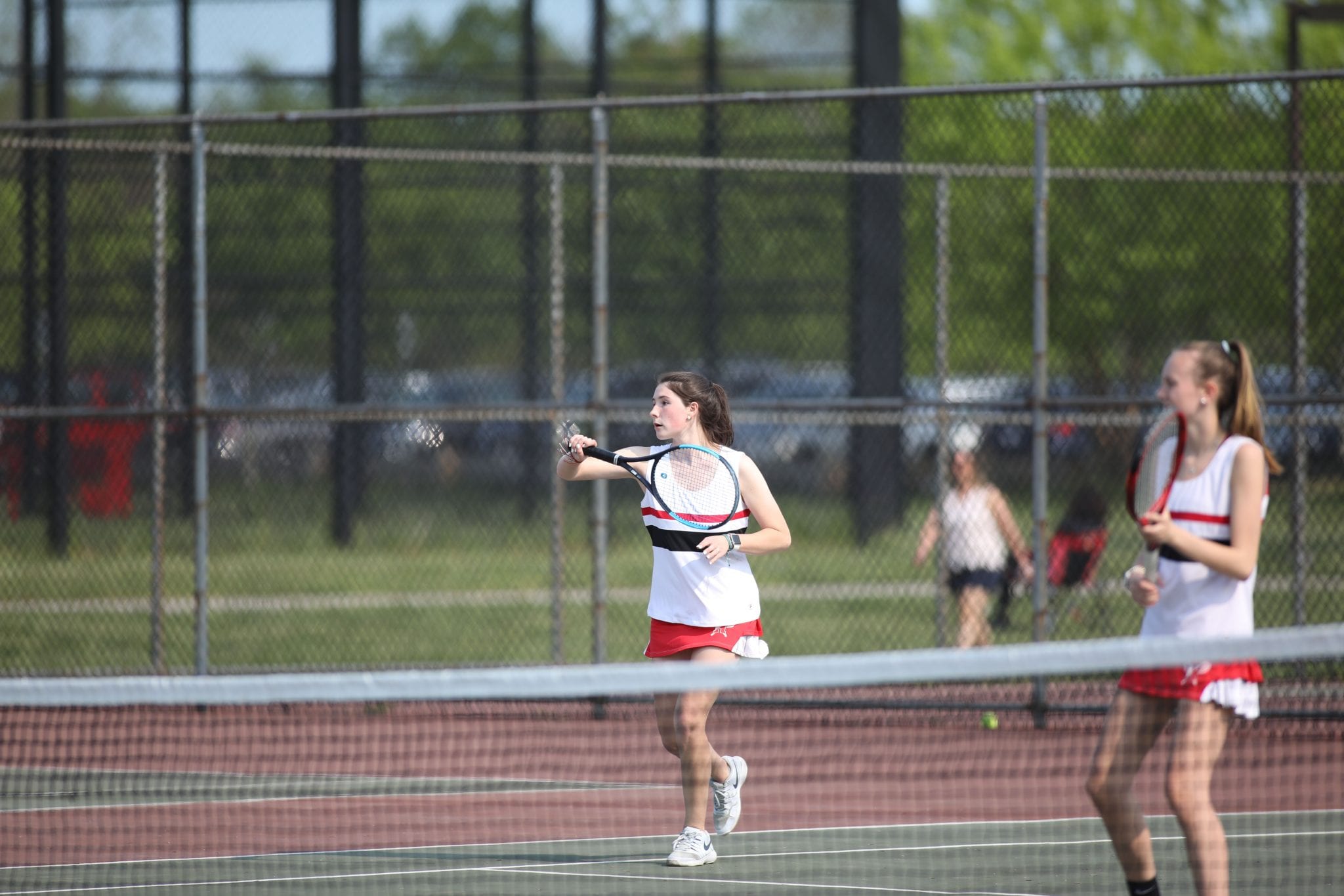 2nd doubles: Abby Levine and Teel Bowyer (HHS) defeated Joan Gale and Grace DeOrsay (MHS) 6-1, 6-3
