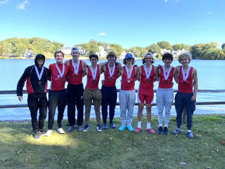 The boys first varsity boat crossed the finish line third out of 15 boats to earn the bronze medal, less than two seconds behind rival BC High. The 1V boat included Sam Ackerman, Gabe Wagner, William D’Arcy, Owen Burleigh, Theo Grossman, Michael Magner, Dylan Drew, Josh Bradshaw, and coxswain Michael Wegener.