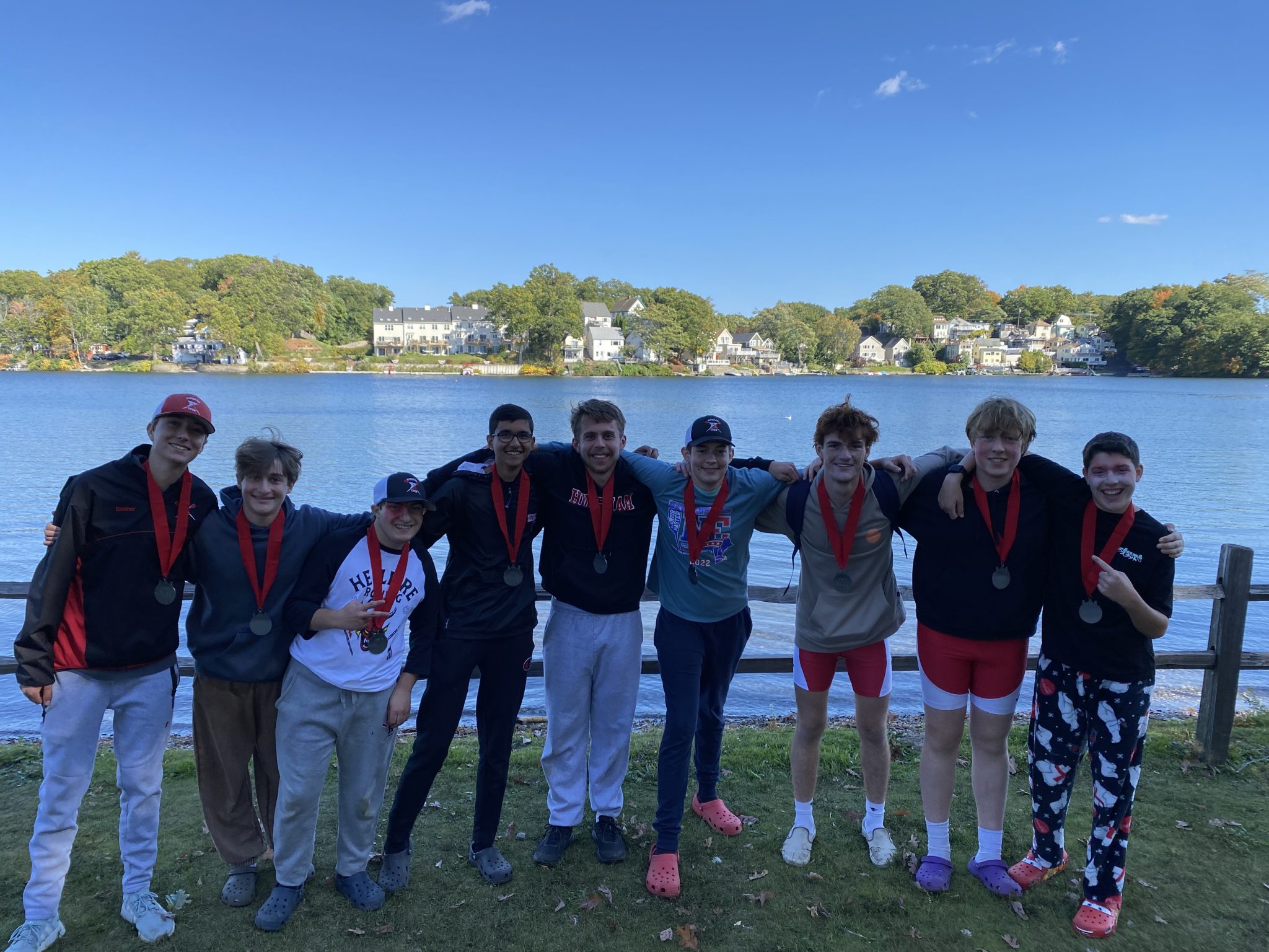 It was silver for the HHS boys fourth varsity crew, finishing second out of four boats with coxswain Jack Levy and rowers Charles Rogan, Kai Hawes, Ryan Kost, Sean Barry, Aqueel Bharmal, Jack Pilotte, Owen Weinstein, and Trevor Steiner.