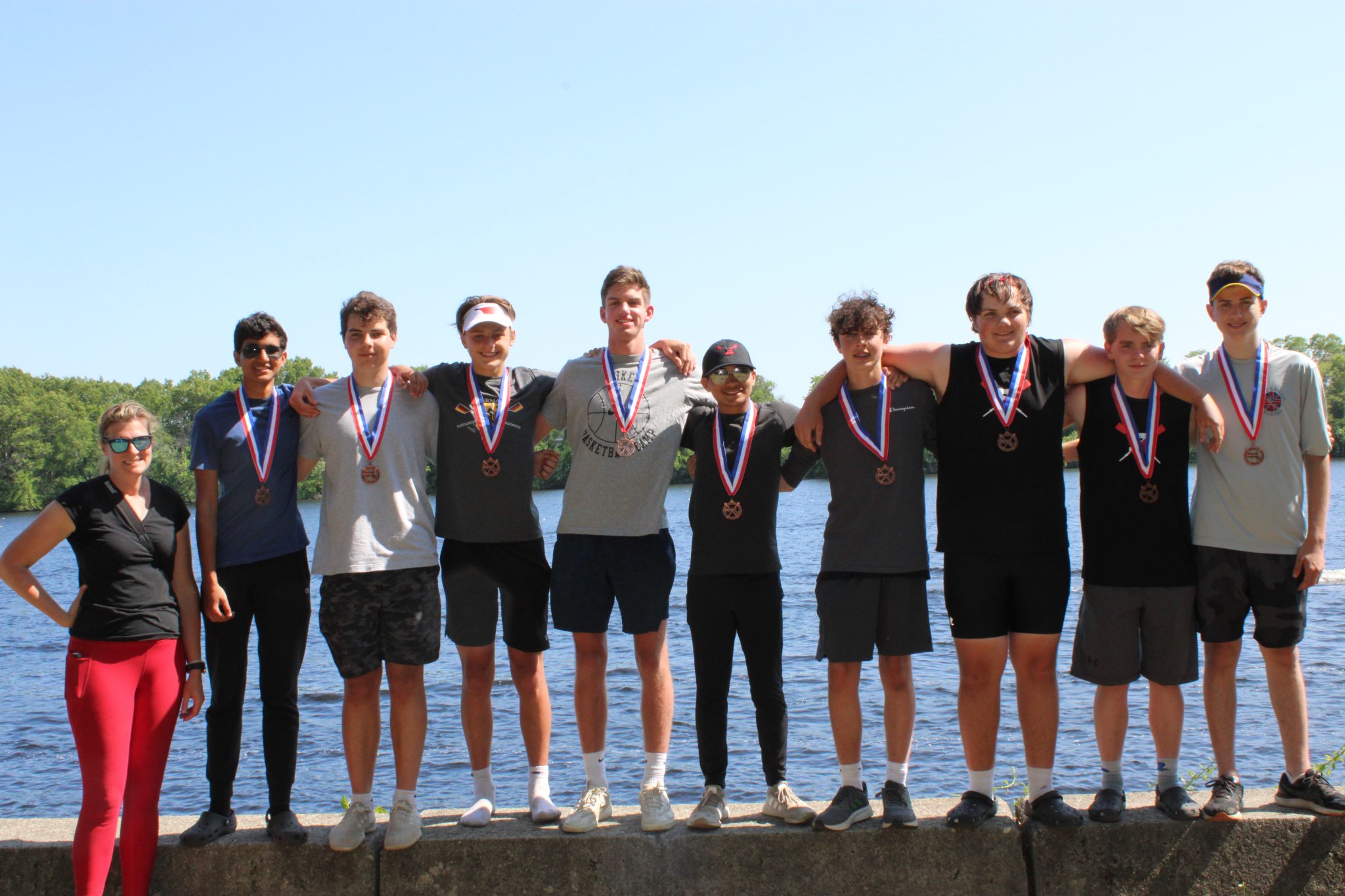 Boys novice raced first in the finals—and HHS earned bronze. Duxbury High School and Brookline Academy took gold and silver, and Hingham crossed three seconds later, beating out Wayland-Weston, Shrewsbury High School, and Boston Latin.