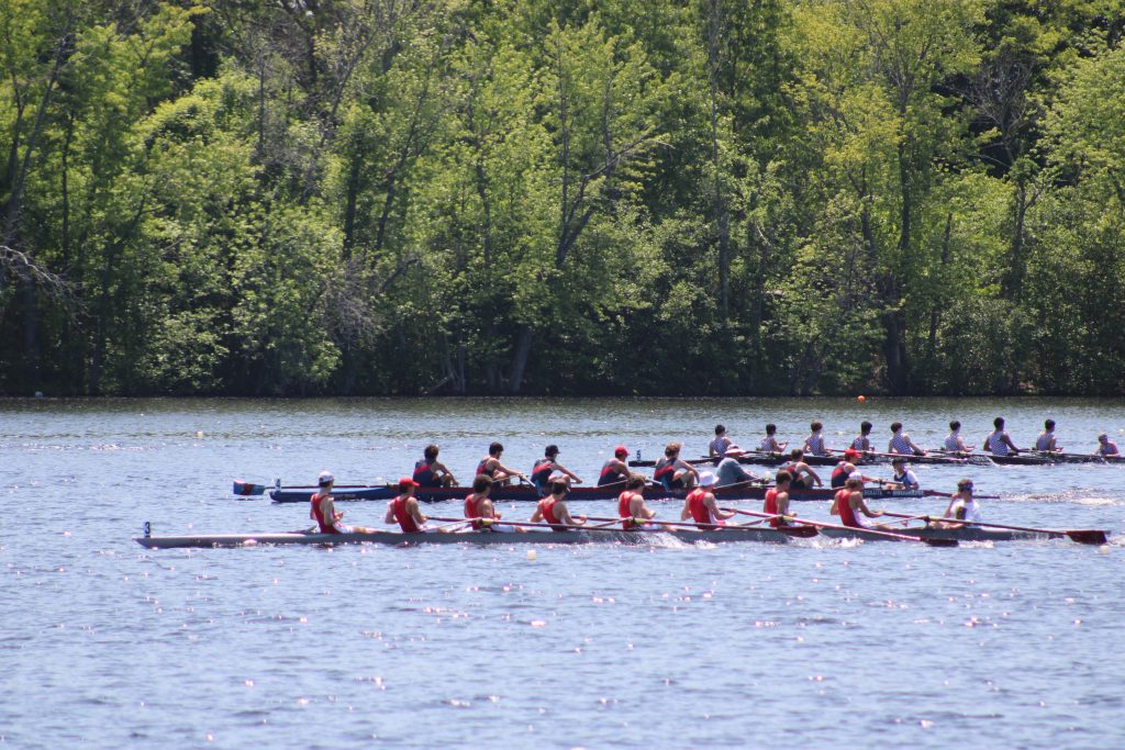 The girls and boys first, second, and third varsity boats competed in the New England Interscholastic Rowing Association (NEIRA) Regatta the day before on Lake Quinsagamond in Worcester. The six boats raced in heats in the morning, followed by finals in the afternoon. The girls 2V and boys 1V each took fourth in the petite finals.