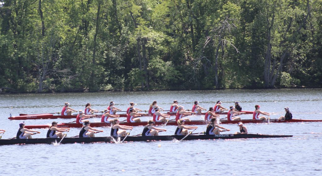 The girls first varsity boat placed sixth behind Wayland-Weston, Boston Latin, Brookline, Bromfield Acton-Boxborough, and Duxbury, just one boat length out of medal contention. Rowing for the 1V were Sophie Kerr, Maisie Knies, Maeve Schnorr, Elena Vasilakos, Marissa Matthews, Jane Betti, Sophia Santarelli, Lynnayah Ryan, and coxswain Maddie McPhillips.