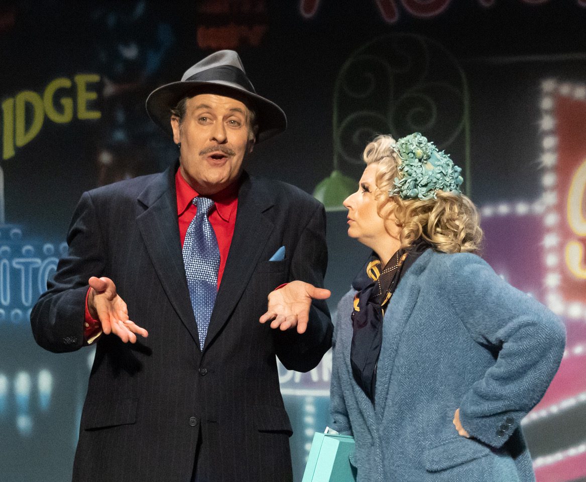 Roy Harris, a semi-retired journalist living in Hingham, has long played roles in Hingham Civic shows. In this “Guys and Dolls” he is the gambler-busting Lt. Brannigan. Photos are by Kerry Tondorf.