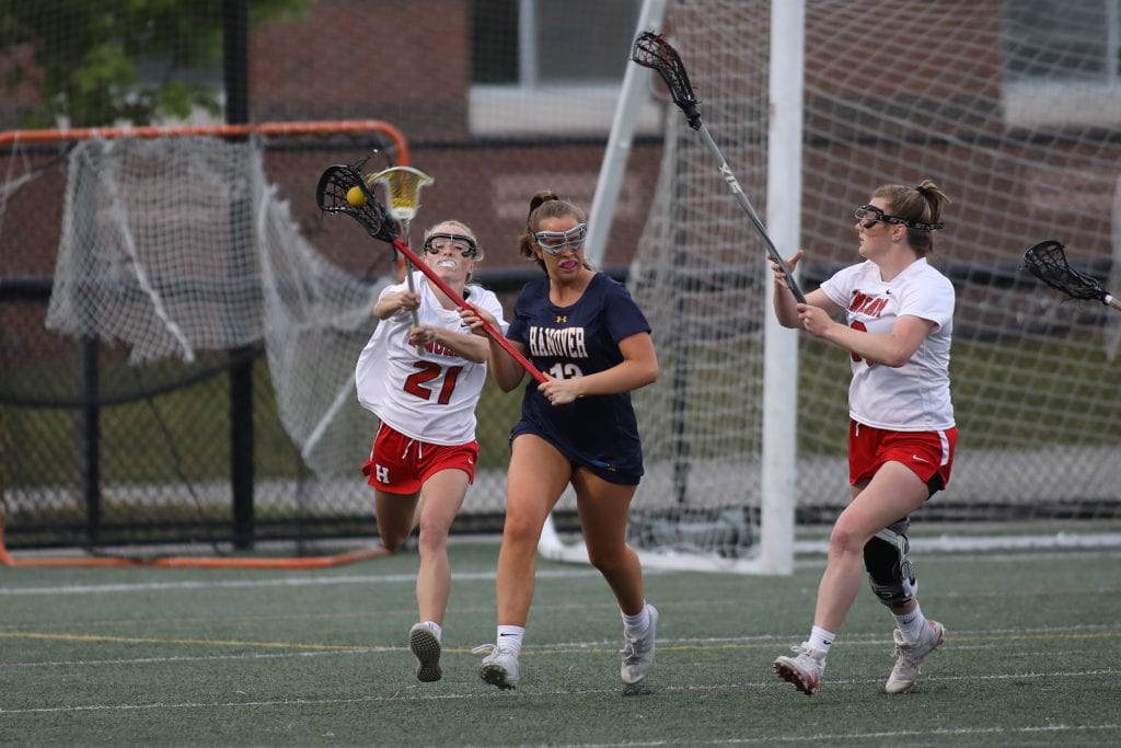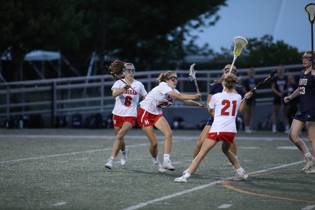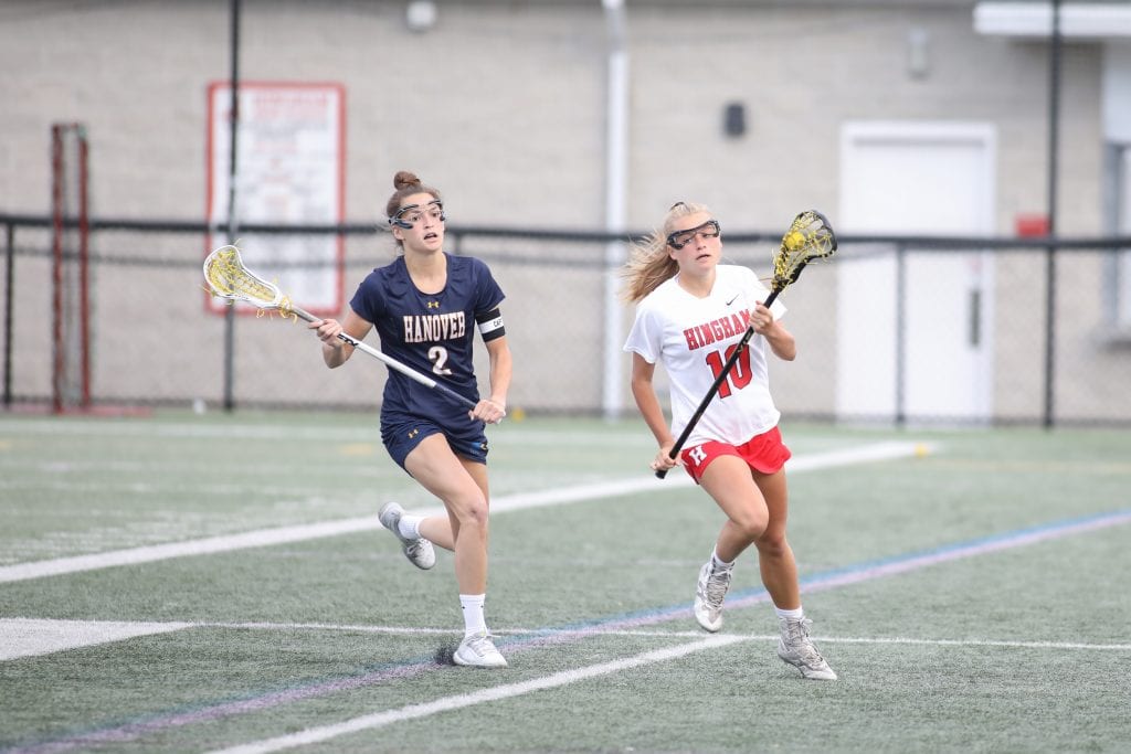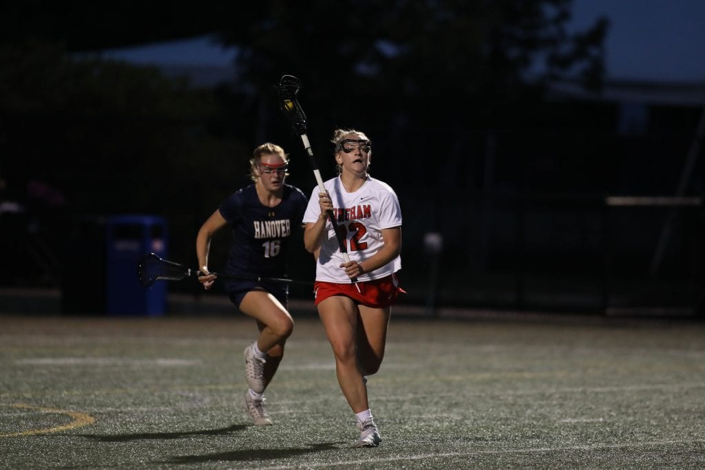 Hingham girls lacrosse started their Patriot Cup run on Wednesday with a nail biter against second seeded Hanover Hawks. Before the game, the 5 seniors and their families were honored for their outstanding high school lacrosse careers. The Harborwomen got off to a quick 4-0 start with goals from juniors Shea Berigan, Ryan Maguire, Kyle Wilson and sophomore Lily Ehler. In what would be a game of streaks, Hanover came right back with 3 of their own. During the second quarter, with an 11-5 lead, Hanover ripped off 7 goals in a row, taking a 12-11 lead into halftime.