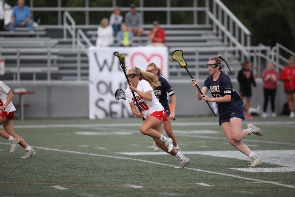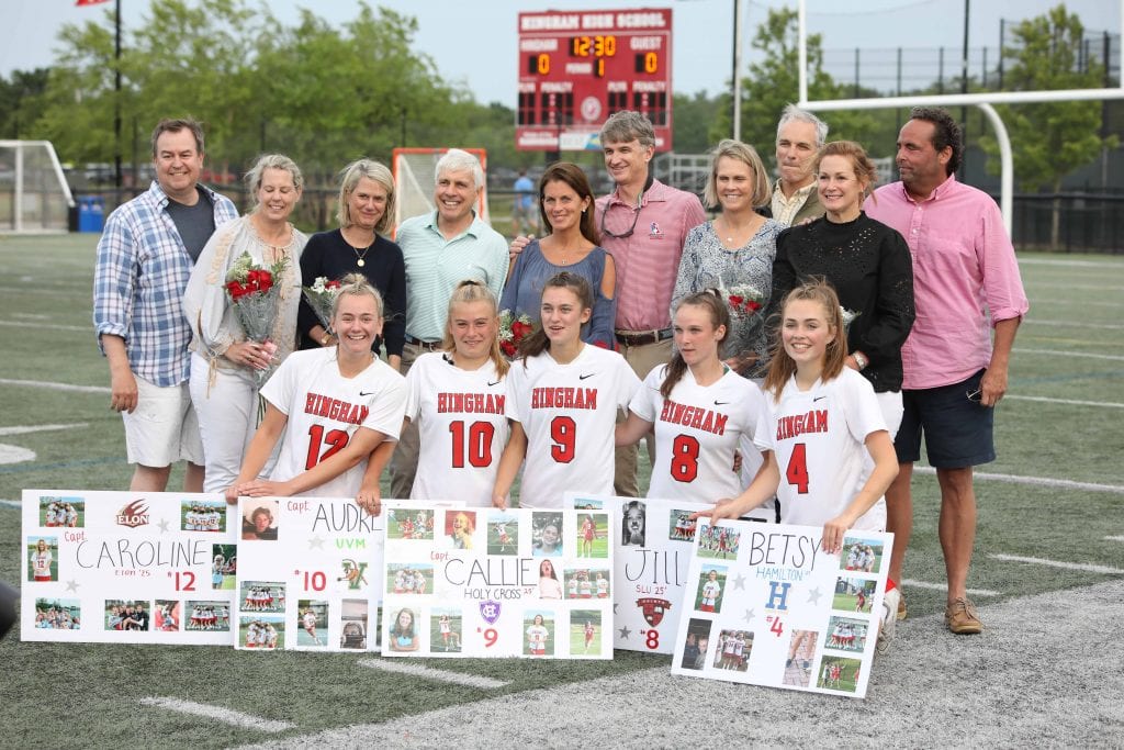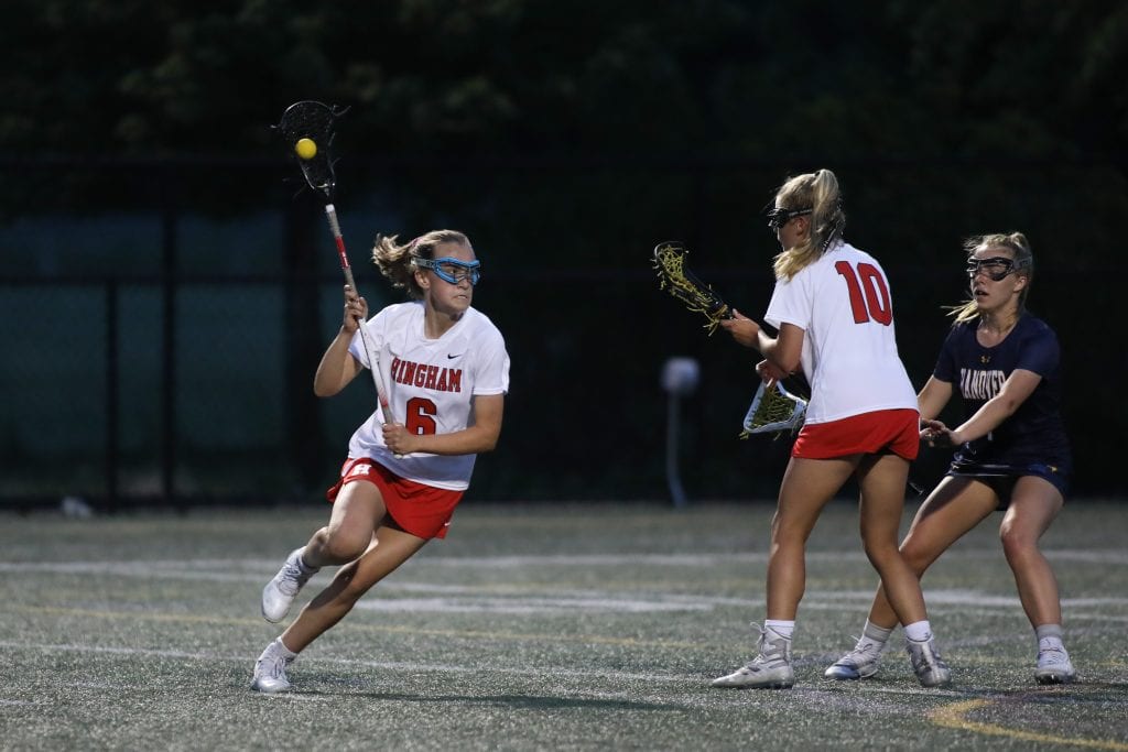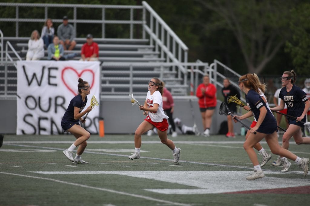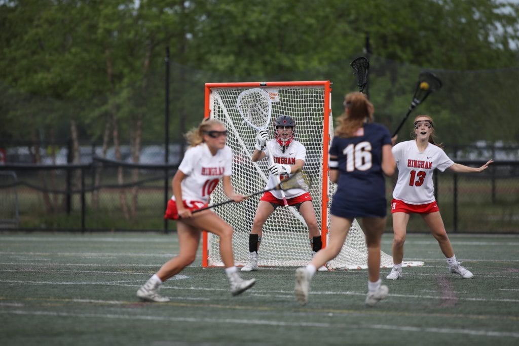 Hingham girls lacrosse started their Patriot Cup run on Wednesday with a nail biter against second seeded Hanover Hawks. Before the game, the 5 seniors and their families were honored for their outstanding high school lacrosse careers. The Harborwomen got off to a quick 4-0 start with goals from juniors Shea Berigan, Ryan Maguire, Kyle Wilson and sophomore Lily Ehler. In what would be a game of streaks, Hanover came right back with 3 of their own. During the second quarter, with an 11-5 lead, Hanover ripped off 7 goals in a row, taking a 12-11 lead into halftime.