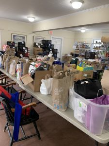 The teams collected 727 lbs of non-perishables during the two games! At the end of the boys’ game, it was a scene from Santa’s workshop as all the hockey parents lined up to move the boxes of food into the Booster Parents’ cars.