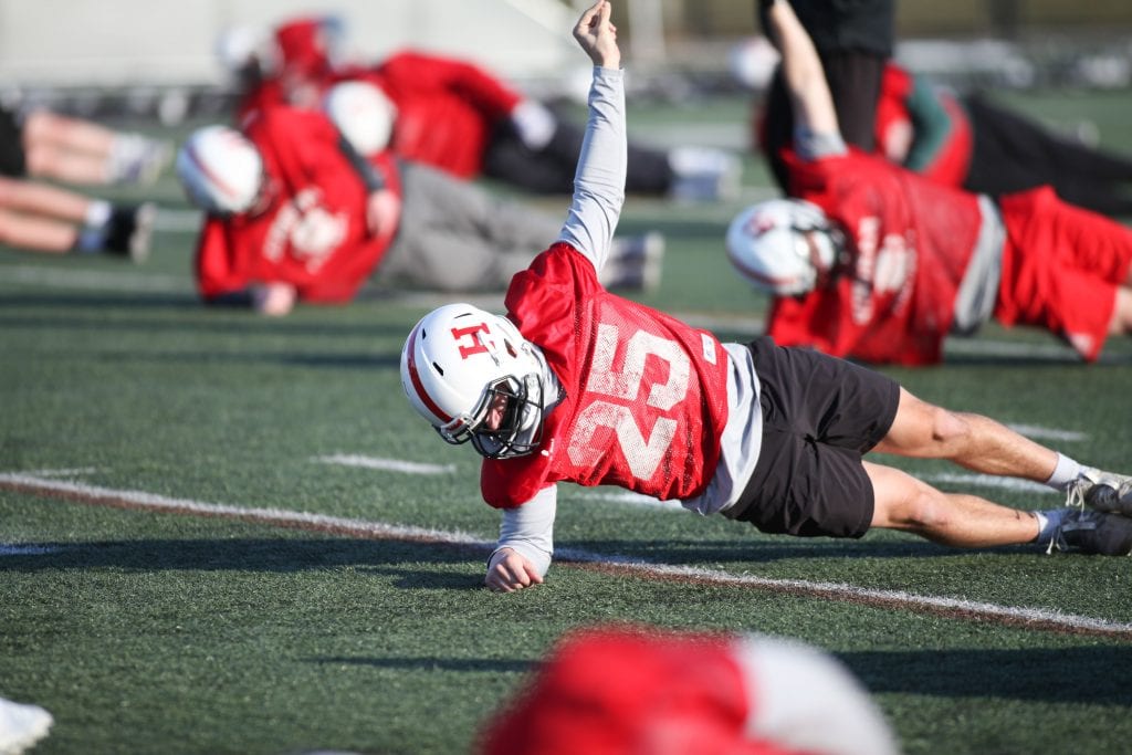 The team practiced in the fall and worked individually over the offseason, which was 15 months long. Guard and defensive end Dan Hannon pointed out the advantages of these practices saying,Definitely some benefits.” “We went through all the fundamentals in the fall, going through techniques,” Hannon noted, but most importantly these practices, “[had] everyone together to keep the spirit up.”