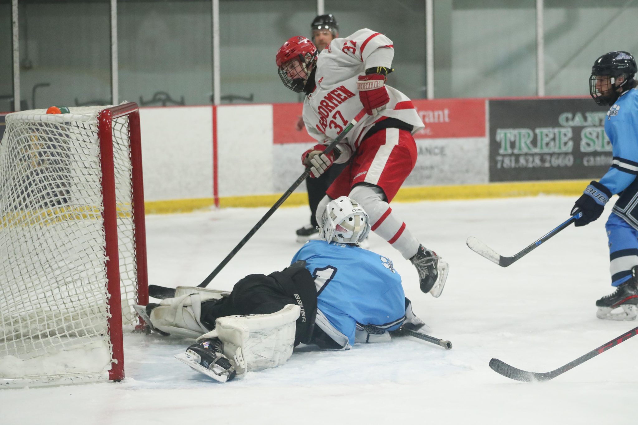 In front of a sold-out crowd, it was apparent early that both teams were ready for the rematch. In almost the same exact way they opened their first round match against St. John's Shrewsbury on Saturday, the Harbormen scored on a tipped shot from the blue line just over 3 minutes into the game. This time, it was senior Alex Barzowskas notching his first goal of the playoffs. The next eleven and half minutes were pretty evenly fought until the waning seconds of the first period when junior Aidan Brazel took the puck through the neutral zone, past a diving defender and put one past the outstretched goaltender to give the Harbormen the 2-0 lead.
