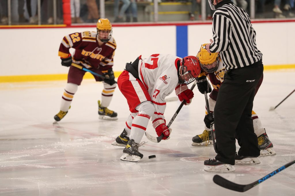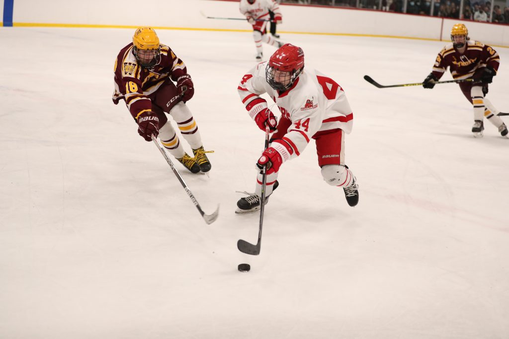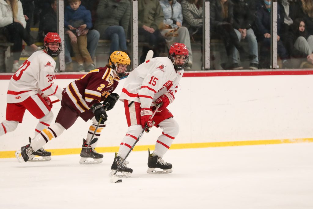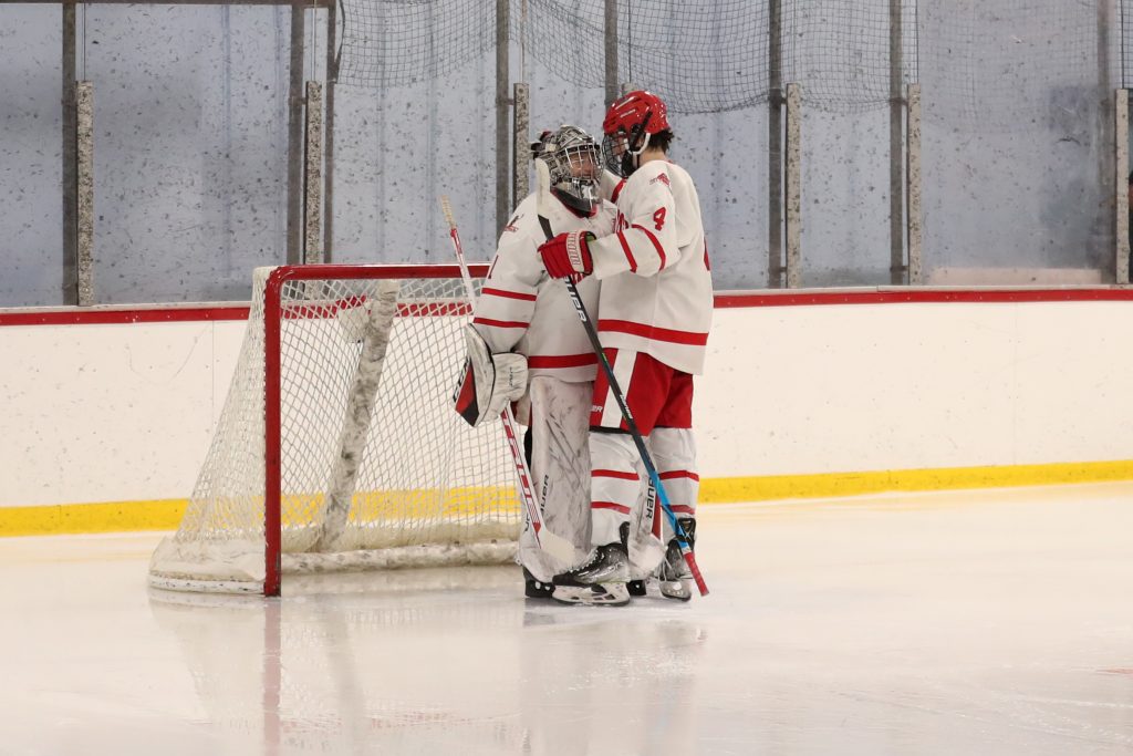 The boys started strong and never looked back. First period goals by senior Alex Barkowskas and junior Billy Jacobus (2) put Hingham up 3-0 after one. With freshman goalie Keagin Wilson making his varsity debut in the second, Hingham added two goals by senior captains Bobby Falvey and Sean Garrity. In the third, senior Ryan Burns netted his second goal of the season, followed by juniors Connor Richardson and Joe Hennessey and senior Nate Blundell, all scoring their first varsity goal.