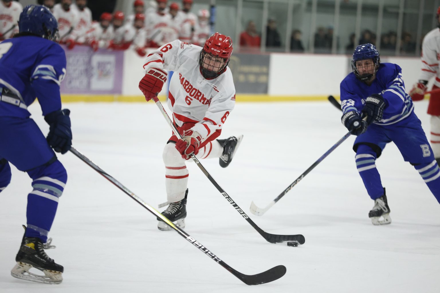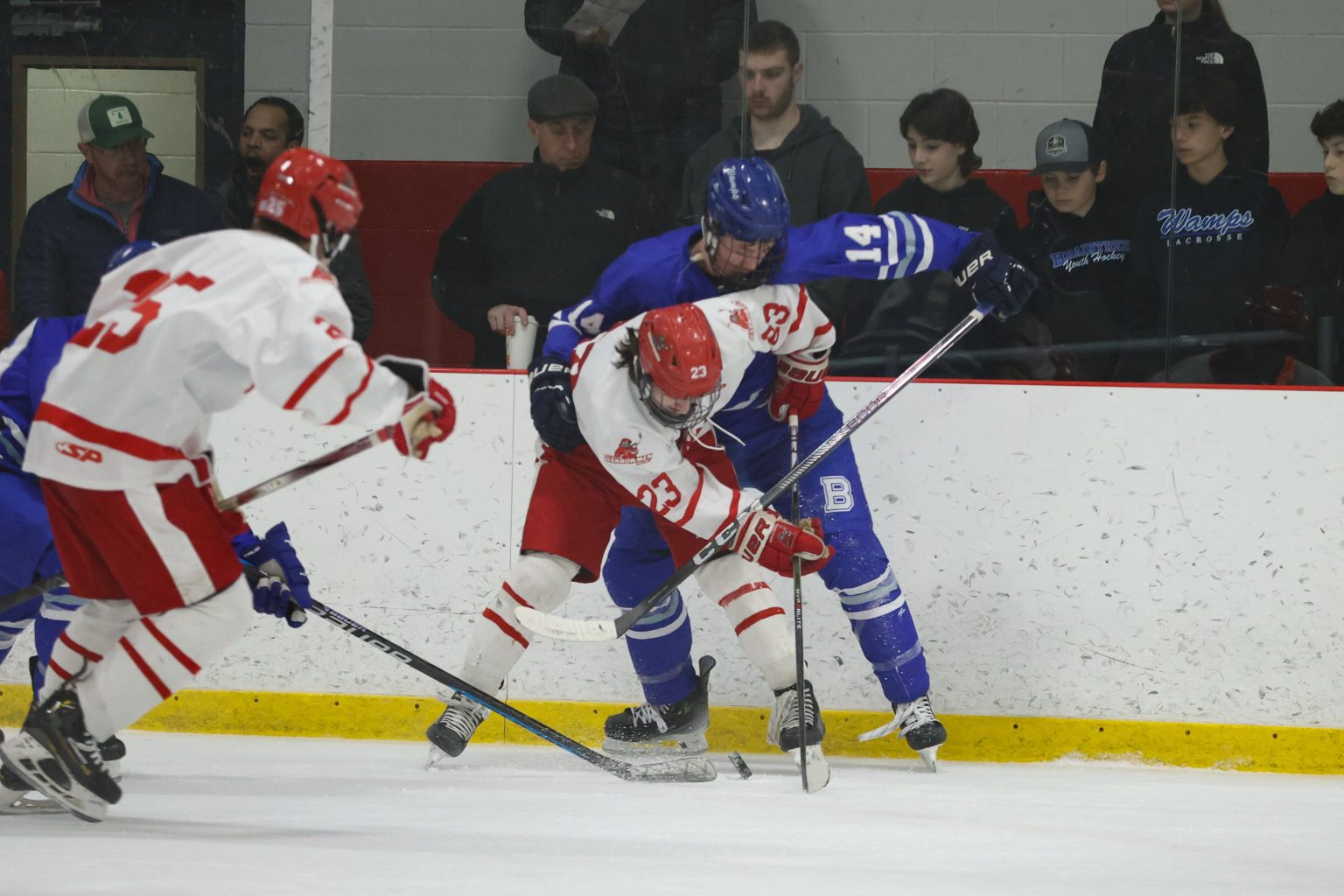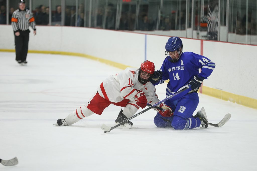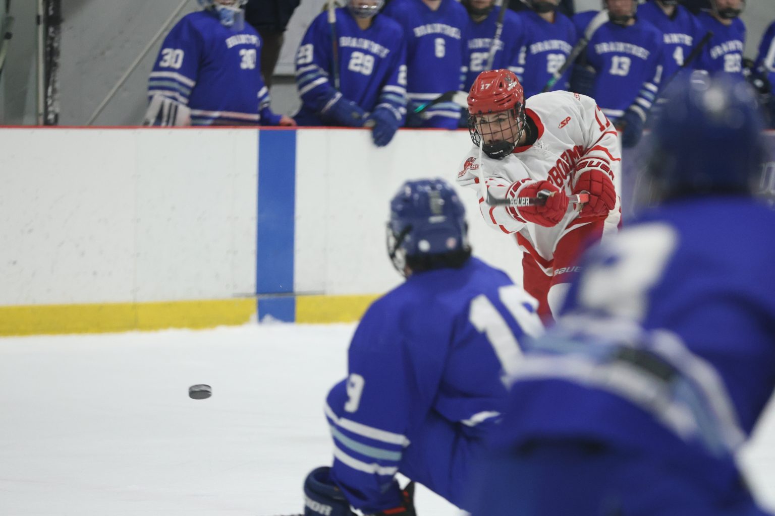 From the first puck drop, you could see that both teams were ready for this game. Braintree seemed to be the more physical team, but Hingham’s speed and puck movement caused problems for the Womps throughout the whole game. Even with the first period ending scoreless, it was only a matter of time before the Harbormen broke through the opposing goalie, who single-handedly kept Braintree in the game in the first frame.
