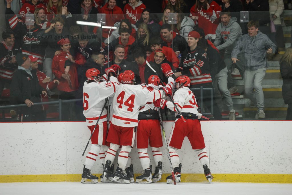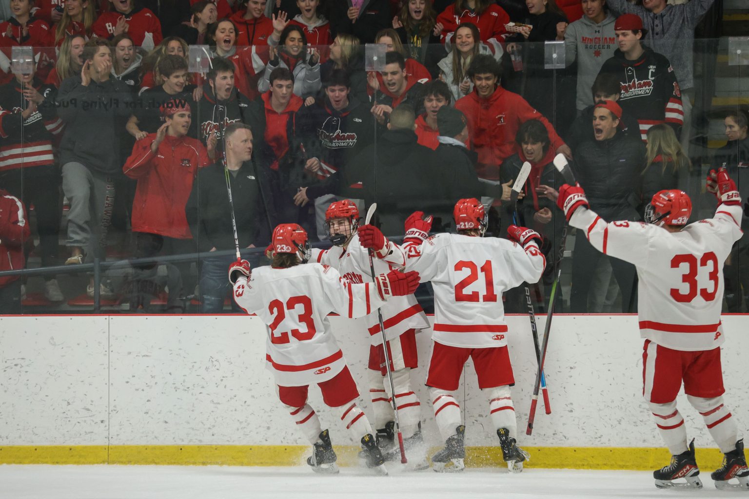 That first goal did eventually come in the second from sophomore Conal Mulkerrin. A short time later, fellow sophomore Cam McKenna added his third of the playoffs. Right before the end of the second, senior captain Paul Dzavik added the third goal and put the game out of reach for the Womps.