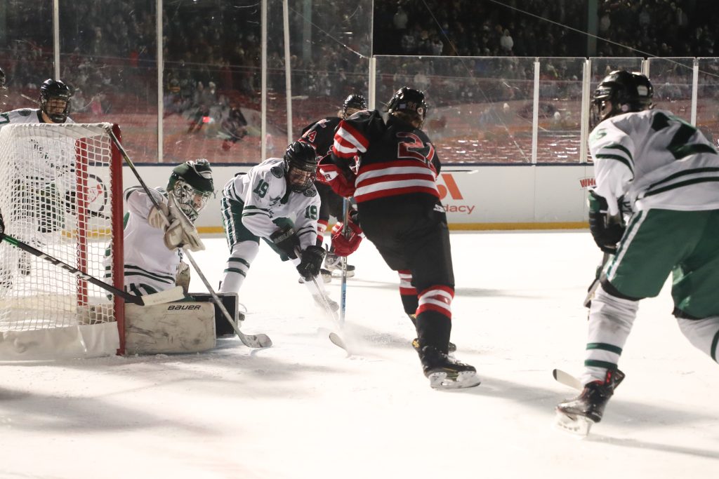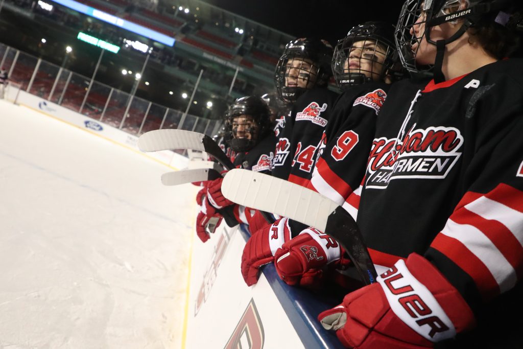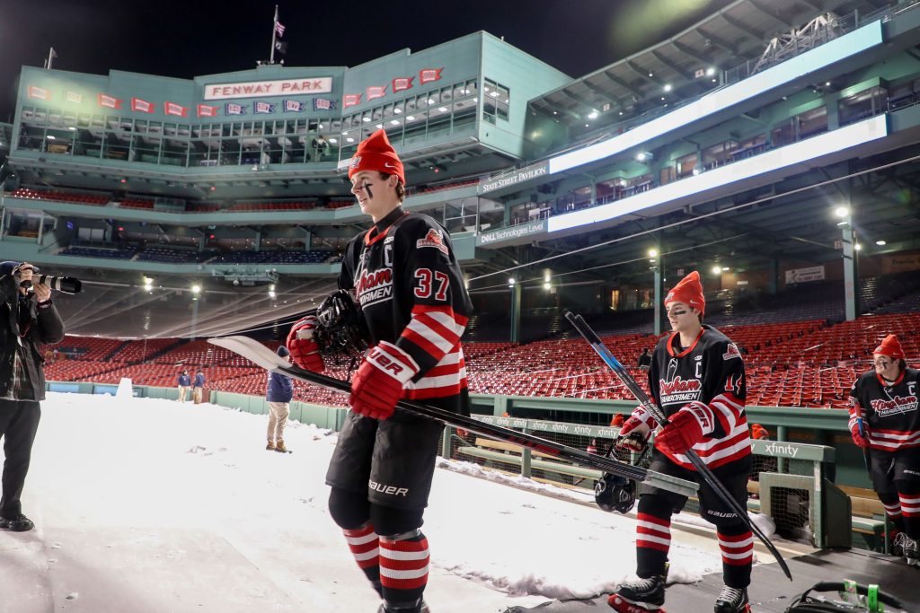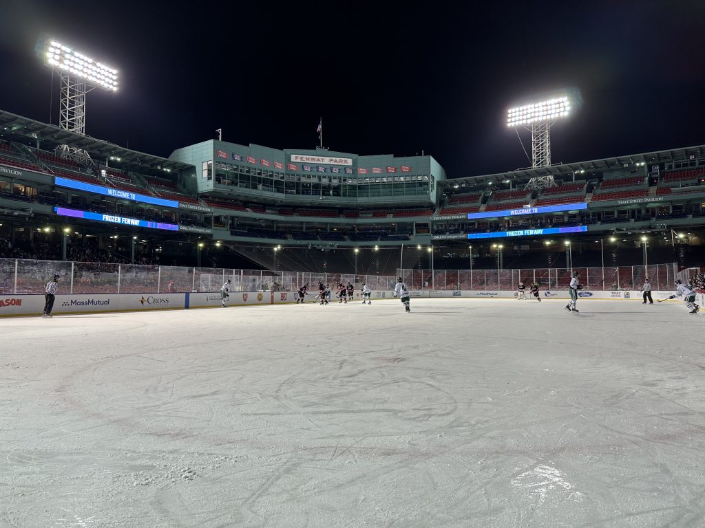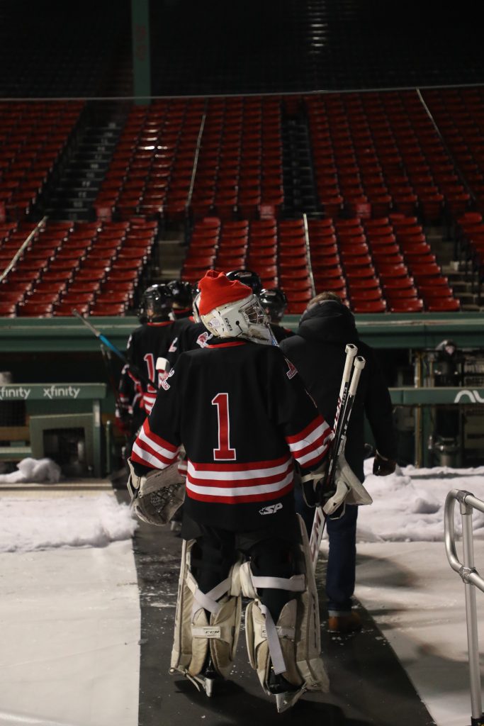 The NHL and Boston Red Sox have been using the rink ever since the Winter Classic on January 2nd. College games, high school games, charity games and family skates have all taken place over the past few weeks. The schedule is tight, as one can image, it was luck that the Harbormen didn’t have any games this week and a spot was open for a high school game.