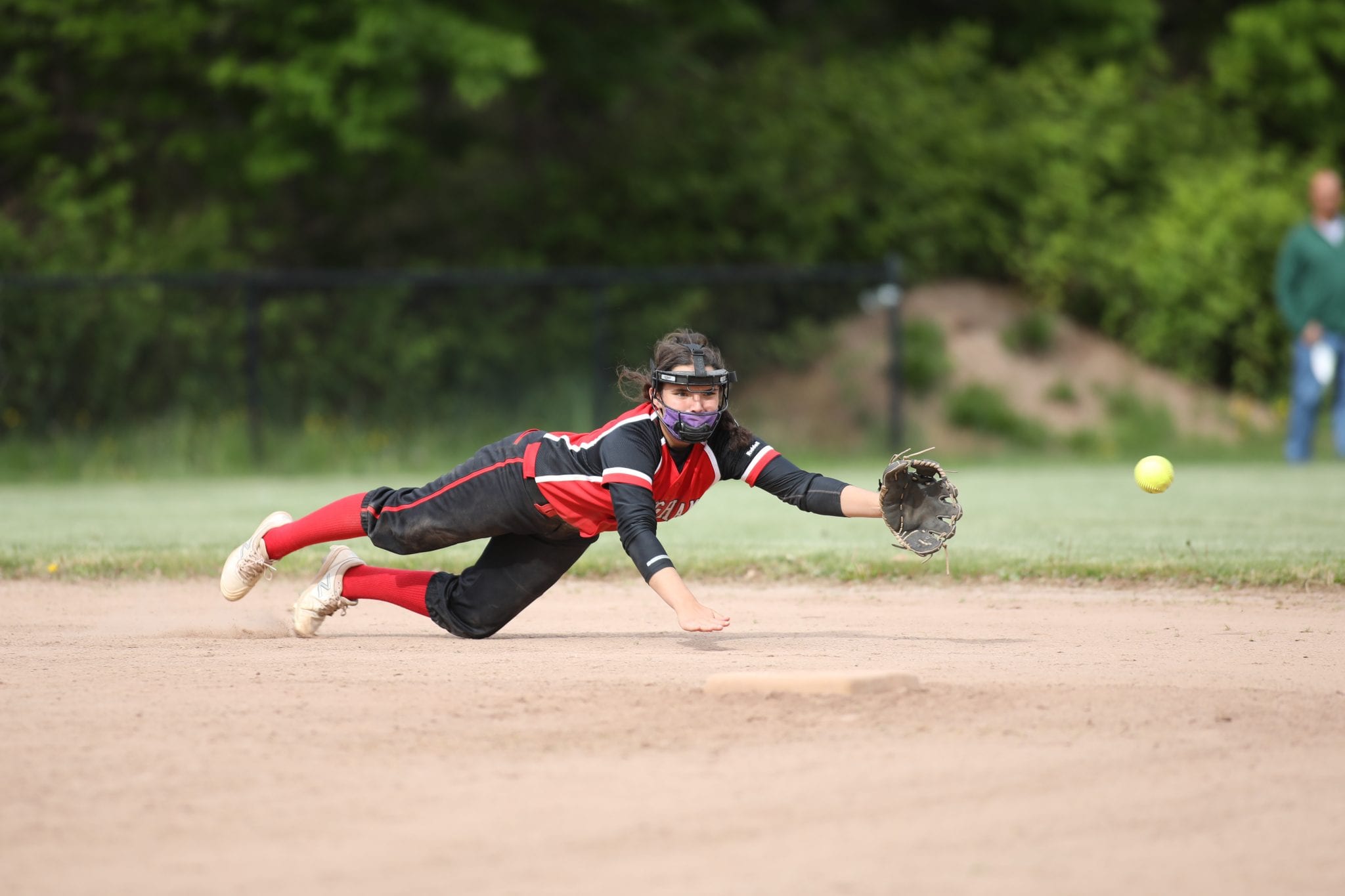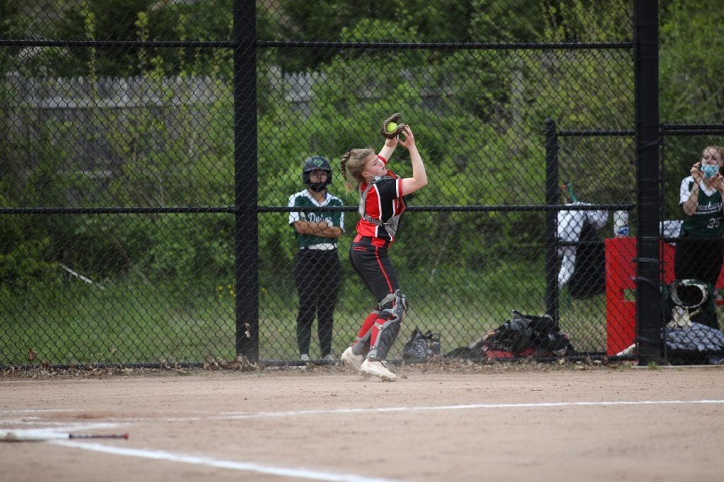 The top of the 5th brought a new side to the game. Duxbury filled the bases through a walk and errors. However, Hingham ended the situation with a final out and got off the field without allowing a score. Hingham found more offensive success. A grounder and a very successful bunt placed runners on the corners, which were soon advanced for the 3-1 lead. A double play killed all of Hingham’s momentum and cleared the bases, but hits by Holler and Lilli Carpenter gave Hingham hope, however short due to a strikeout. Duxbury put themselves in scoring position after a fly ball to left field and immediately capitalized on it with a ground ball. A walk and stolen bases advanced runners to second and third bases, and a bunt tied the game 3-3. However, a pop fly and a strikeout left Duxbury unable to capitalize on their other runners and Hingham left the field again. A line drive for Hingham put two runners on second and third base but was called out at home after attempting to steal on a loose ball. Despite this, a ground ball put Hingham back ahead by one and ended the inning.