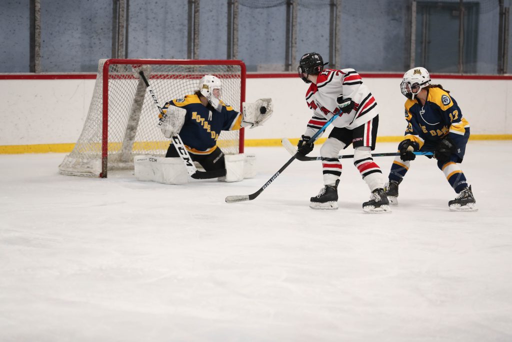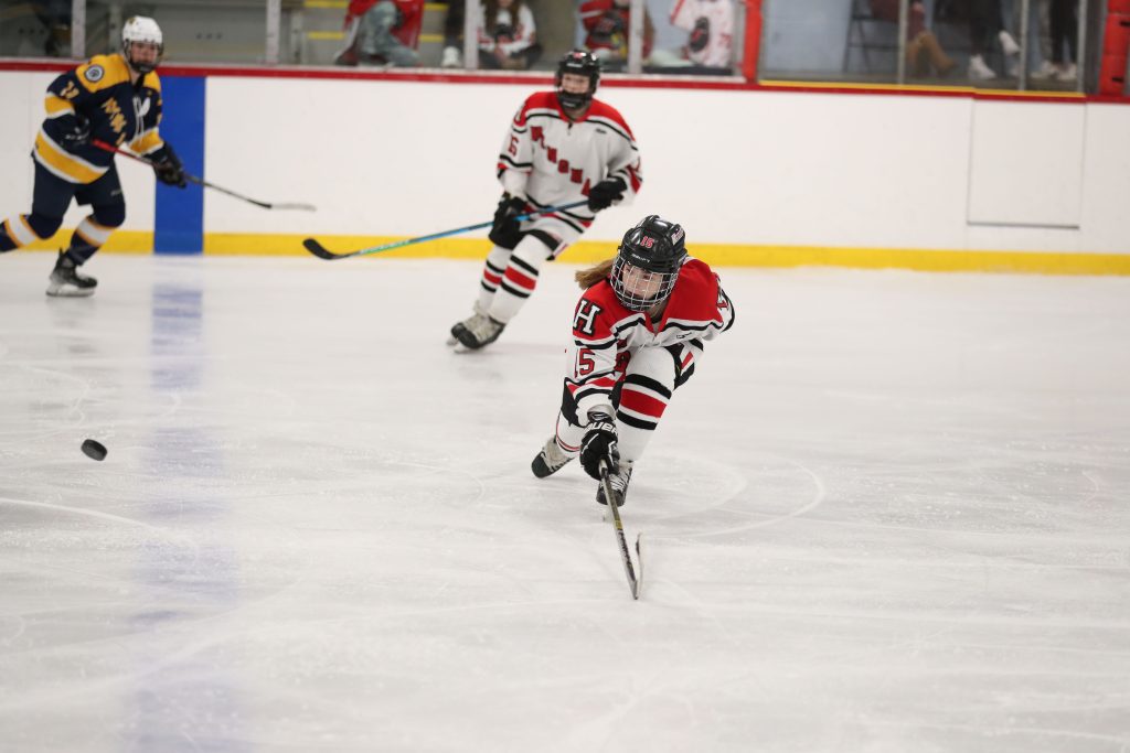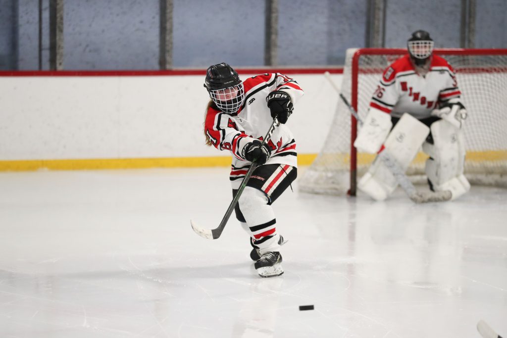 The win is a result of some changes the team has been going through the past couple of weeks, both on and off the ice. There is a new goalie’s coach, which has paid big dividends already. The girls have also adopted a new “Play For Her” philosophy focusing on having fun and supporting each other.
