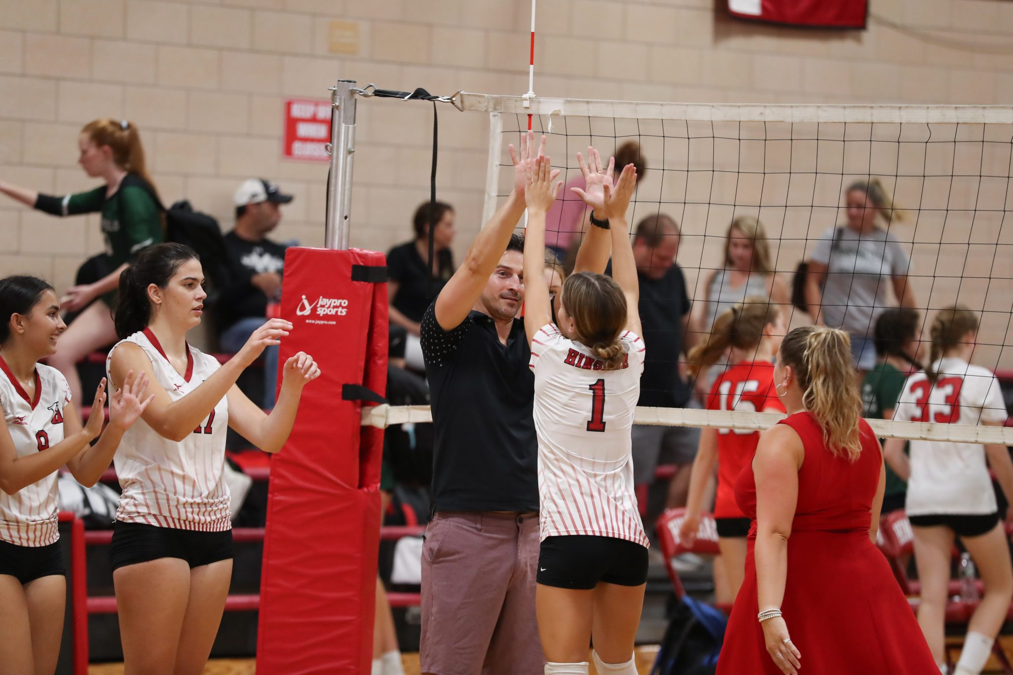 “I think that we worked out our nerves on Monday,” Lay went on to say. “I think that with the chaos of not being on the regular court (equipment malfunction) and things like that probably didn’t help our nerves. I think we are more comfortable now. We spent a lot of time on passing and serving in practice and I think that really showed tonight. What we want to dictate in first ball contact on both ends – serve and serve receive. LT (Olivia Tamburro) went on a huge run (serving) for us to start and that really fired up things. We did a great job start to finish.”